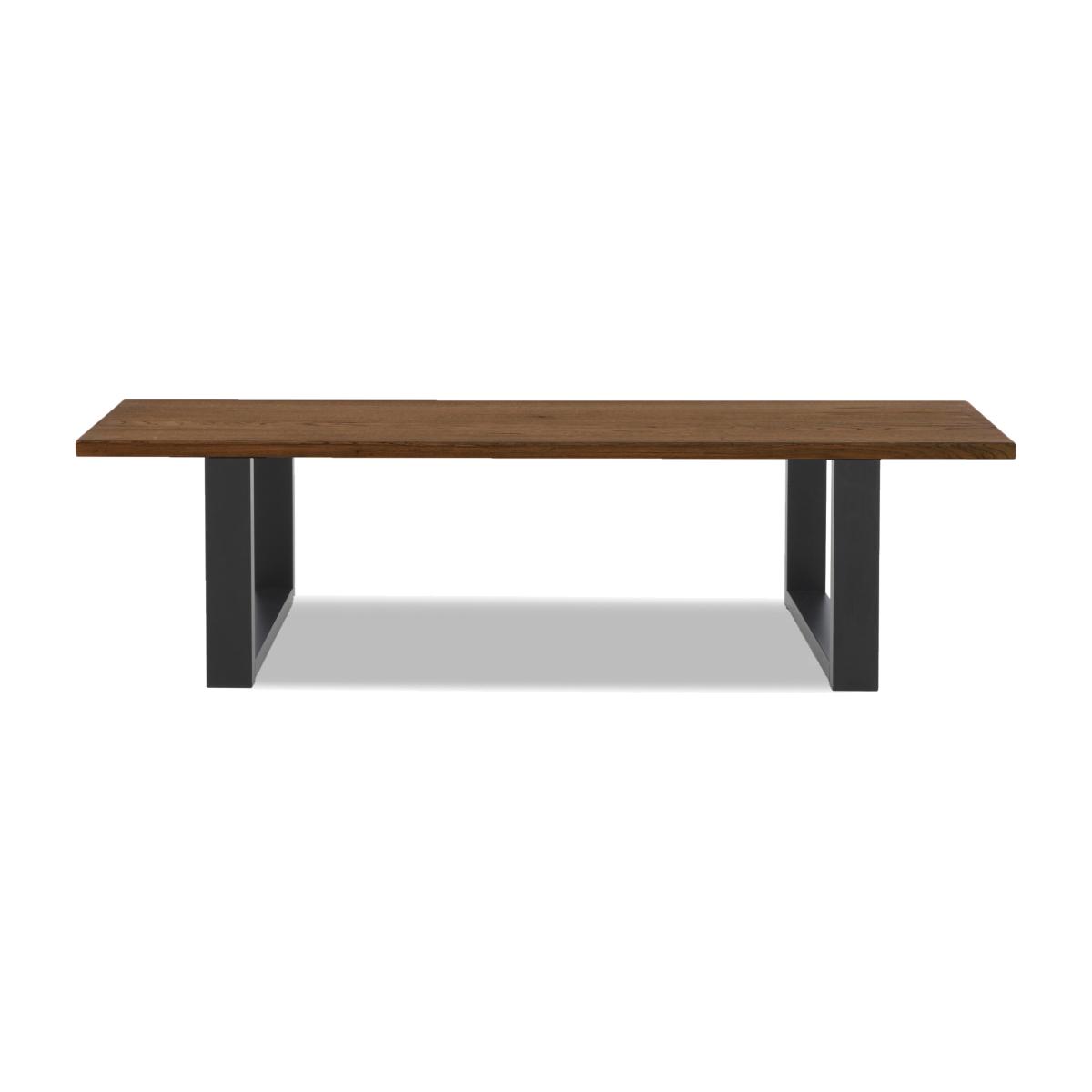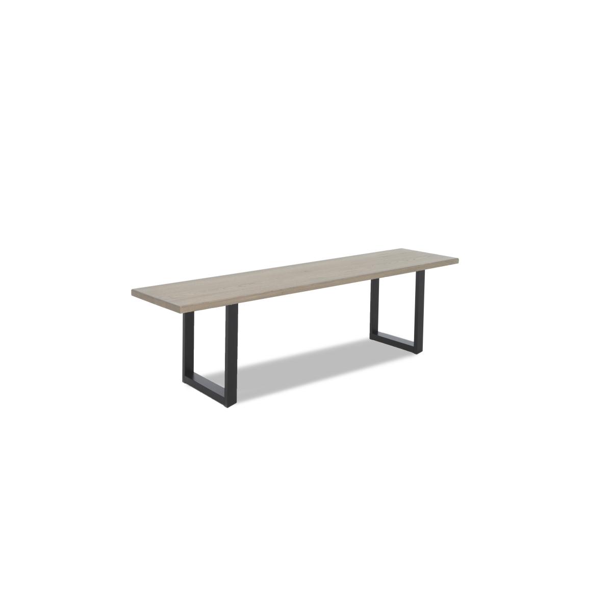 The Terra range combines the warmth of rustic style with the urban edge of industrial design – and it does it beautifully. Expertly handcrafted from solid natural oak, every piece boasts impeccable craftsmanship with knots and markings on full display. Its distinctive black metal legs and natural warmth make this a statement range for design-led interiors and relaxed dining spaces alike. And with a handcrafted padded bench or soft, faux leather cantilevered chairs, there’s plenty of comfy perches to choose from. Simply sit back, tuck in and enjoy your meal in comfort. The Terra range is fully bespoke with a wide range of options for table top edges, thickness, size and colour, alongside several striking leg options. Create your unique design today. Available in two sizes, this beautiful handcrafted solid oak and metal industrial dining bench is the perfect fit for your home. The U-shaped black metal legs give it a distinctive contemporary look. Why you'll love it Versatile dining bench with a fantastic modern industrial look. At last – a compact version of our popular Bodahl Terra range. Handcrafted 100% solid oak top in a choice of colours and finishes. A protective matt lacquer makes this an enduring piece. Black metal U-shaped legs. Available in 2 sizes. Make it even more stylish with a bench pad, available separately. Only at Furniture Village. This dining bench is part of the Bodahl Compact Terra collection. What you need to know Made of solid oak and metal. 140 cm bench seats 2 adults. 160 cm bench seats 3 adults. Oak top may display knots, saw marks and variations in tone and texture. Metal legs are finished by hand and may show marks. Use a clean damp cloth to clean the oak top.