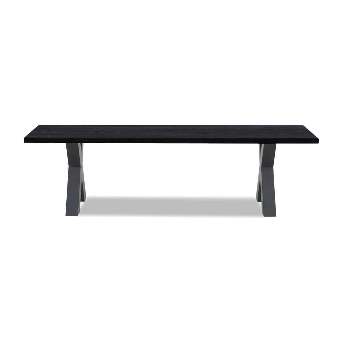 The Terra range combines the warmth of rustic style with the urban edge of industrial design – and it does it beautifully. Expertly handcrafted from solid natural oak, every piece boasts impeccable craftsmanship with knots and markings on full display. Its distinctive black metal legs and natural warmth make this a statement range for design-led interiors and relaxed dining spaces alike. And with a handcrafted padded bench or soft, faux leather cantilevered chairs, there’s plenty of comfy perches to choose from. Simply sit back, tuck in and enjoy your meal in comfort. The Terra range is fully bespoke with a wide range of options for table top edges, thickness, size and colour, alongside several striking leg options. Create your unique design today. A dining bench seats more people in less space and takes up less room in a smaller dining space. This one by Bodahl one has a solid oak top and X-shaped metal legs. Why you'll love it This versatile industrial oak dining bench fits perfectly in dining rooms of all sizes. At last – a compact version of our popular Bodahl Terra range. Handcrafted 100% solid oak top in a choice of colours and finishes. A protective matt lacquer makes this an enduring piece. Black metal X-shaped legs. Available in 2 sizes. Make it even more stylish with a bench pad, available separately. Only at Furniture Village. This dining bench is part of the Bodahl Compact Terra collection. What you need to know Made of solid oak and metal. 140 cm bench seats 2 adults. 160 cm bench seats 3 adults. Oak top may display knots, saw marks and variations in tone and texture. Metal legs are finished by hand and may show marks. Use a clean damp cloth to clean the oak top.