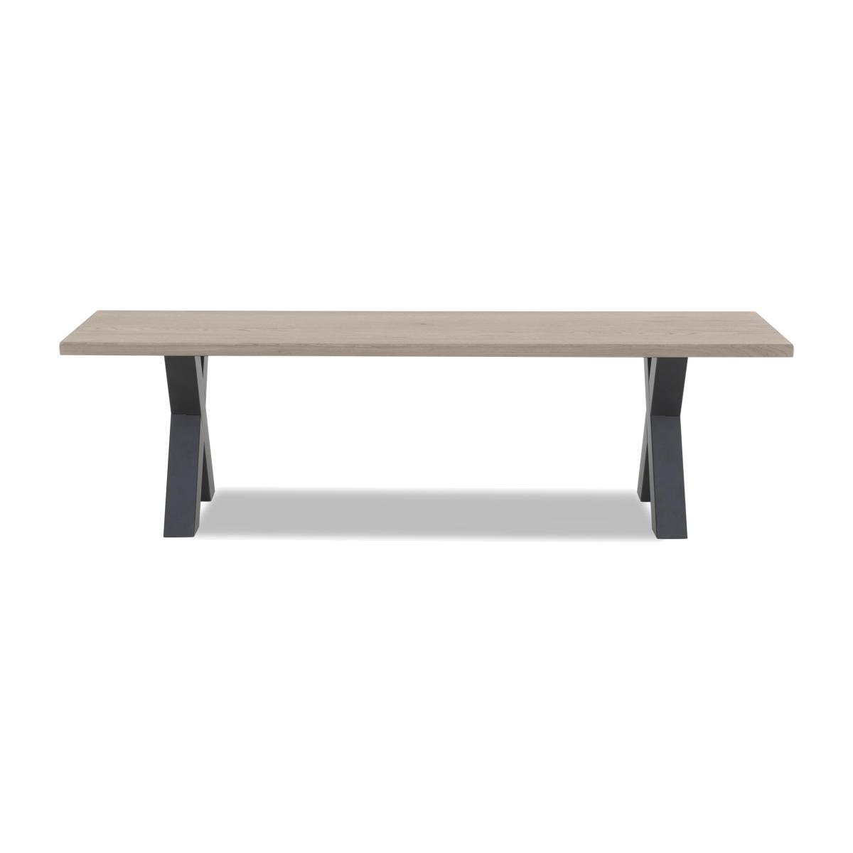 The Terra range combines the warmth of rustic style with the urban edge of industrial design – and it does it beautifully. Expertly handcrafted from solid natural oak, every piece boasts impeccable craftsmanship with knots and markings on full display. Its distinctive black metal legs and natural warmth make this a statement range for design-led interiors and relaxed dining spaces alike. And with a handcrafted padded bench or soft, faux leather cantilevered chairs, there’s plenty of comfy perches to choose from. Simply sit back, tuck in and enjoy your meal in comfort. The Terra range is fully bespoke with a wide range of options for table top edges, thickness, size and colour, alongside several striking leg options. Create your unique design today. A dining bench seats more people in less space and takes up less room in a smaller dining space. This one by Bodahl one has a solid oak top and X-shaped metal legs. Why you'll love it This versatile industrial oak dining bench fits perfectly in dining rooms of all sizes. At last – a compact version of our popular Bodahl Terra range. Handcrafted 100% solid oak top in a choice of colours and finishes. A protective matt lacquer makes this an enduring piece. Black metal X-shaped legs. Available in 2 sizes. Make it even more stylish with a bench pad, available separately. Only at Furniture Village. This dining bench is part of the Bodahl Compact Terra collection. What you need to know Made of solid oak and metal. 140 cm bench seats 2 adults. 160 cm bench seats 3 adults. Oak top may display knots, saw marks and variations in tone and texture. Metal legs are finished by hand and may show marks. Use a clean damp cloth to clean the oak top.