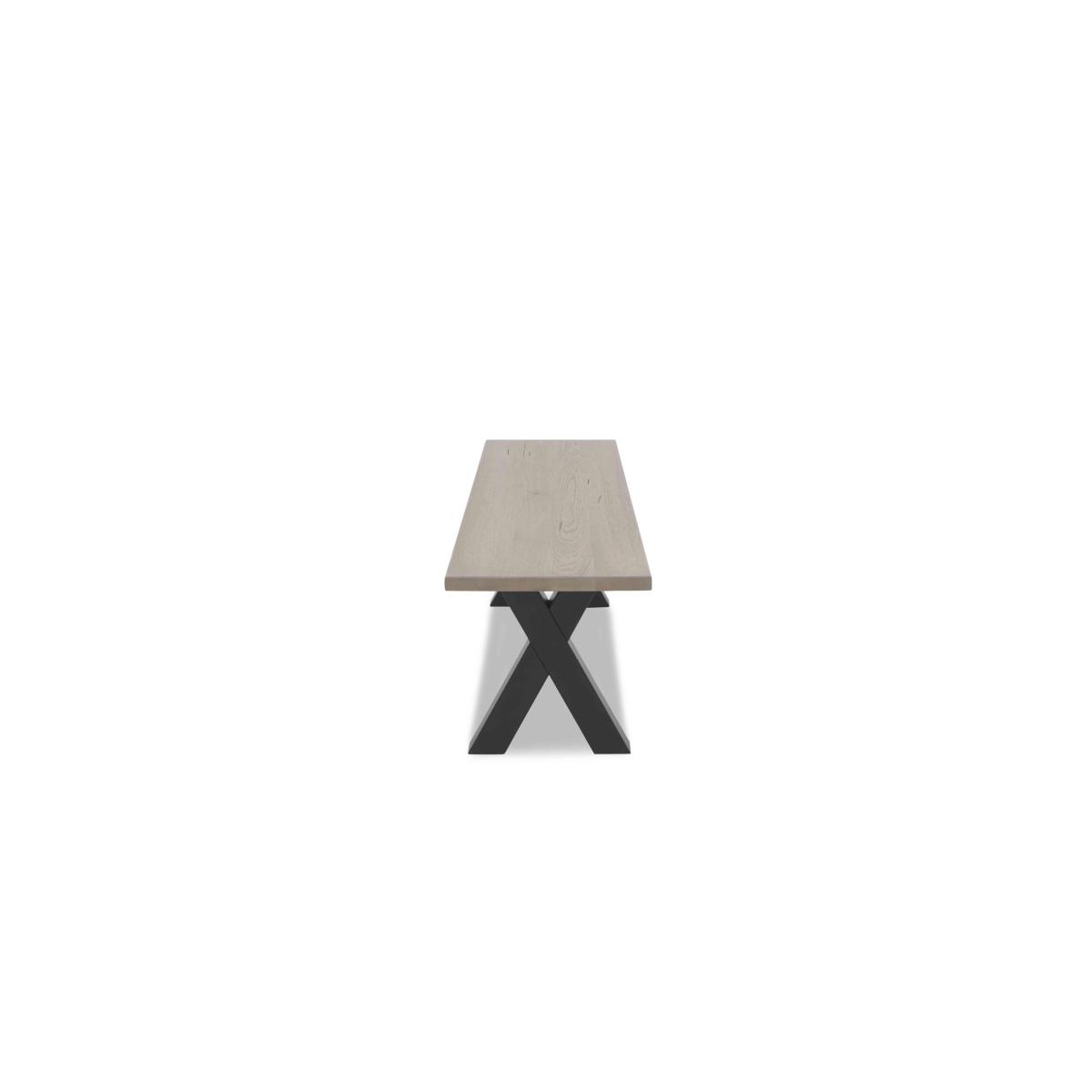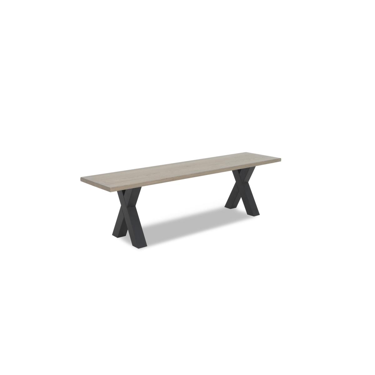 The Terra range combines the warmth of rustic style with the urban edge of industrial design – and it does it beautifully. Expertly handcrafted from solid natural oak, every piece boasts impeccable craftsmanship with knots and markings on full display. Its distinctive black metal legs and natural warmth make this a statement range for design-led interiors and relaxed dining spaces alike. And with a handcrafted padded bench or soft, faux leather cantilevered chairs, there’s plenty of comfy perches to choose from. Simply sit back, tuck in and enjoy your meal in comfort. The Terra range is fully bespoke with a wide range of options for table top edges, thickness, size and colour, alongside several striking leg options. Create your unique design today. A dining bench seats more people in less space and takes up less room in a smaller dining space. This one by Bodahl one has a solid oak top and X-shaped metal legs. Why you'll love it This versatile industrial oak dining bench fits perfectly in dining rooms of all sizes. At last – a compact version of our popular Bodahl Terra range. Handcrafted 100% solid oak top in a choice of colours and finishes. A protective matt lacquer makes this an enduring piece. Black metal X-shaped legs. Available in 2 sizes. Make it even more stylish with a bench pad, available separately. Only at Furniture Village. This dining bench is part of the Bodahl Compact Terra collection. What you need to know Made of solid oak and metal. 140 cm bench seats 2 adults. 160 cm bench seats 3 adults. Oak top may display knots, saw marks and variations in tone and texture. Metal legs are finished by hand and may show marks. Use a clean damp cloth to clean the oak top.