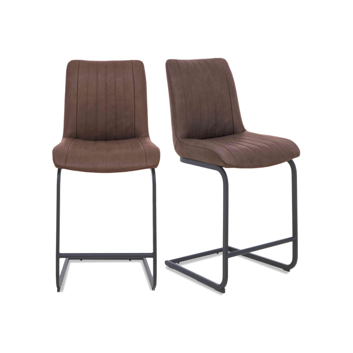 The Terra range combines the warmth of rustic style with the urban edge of industrial design – and it does it beautifully. Expertly handcrafted from solid natural oak, every piece boasts impeccable craftsmanship with knots and markings on full display. Its distinctive black metal legs and natural warmth make this a statement range for design-led interiors and relaxed dining spaces alike. And with a handcrafted padded bench or soft, faux leather cantilevered chairs, there’s plenty of comfy perches to choose from. Simply sit back, tuck in and enjoy your meal in comfort. The Terra range is fully bespoke with a wide range of options for table top edges, thickness, size and colour, alongside several striking leg options. Create your unique design today. Make kitchen countertop dining more stylish with this pair of Bodahl bar stools with black metal cantilever bases and fluted upholstery. Only at Furniture Village. Why you'll love it Pair of fabulous bar stools showcases distinctive urban design. Cool industrial style for modern kitchen diners. Fluted faux leather upholstery in a choice of colour. Black metal cantilever bases with footrests. Seat back handles for manoeuvrability. These bar stools look perfect with any of the range’s bar tables. Only at Furniture Village. This pair of bar stools is part of the Bodahl Compact Terra collection. What you need to know Metal frames and legs. Foam cushioning.