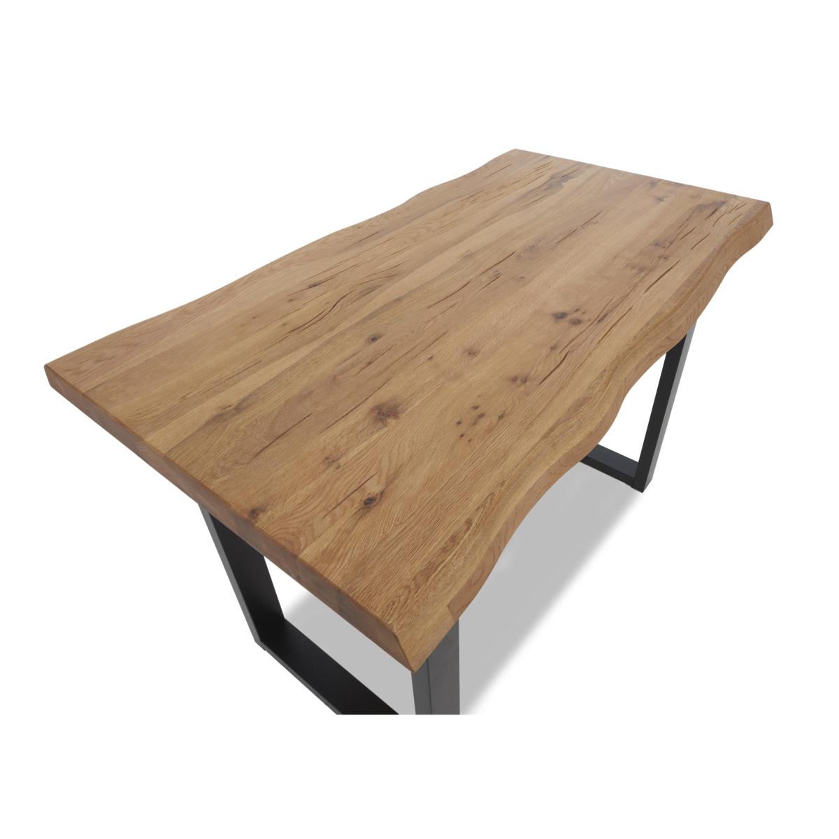 The Terra range combines the warmth of rustic style with the urban edge of industrial design – and it does it beautifully. Expertly handcrafted from solid natural oak, every piece boasts impeccable craftsmanship with knots and markings on full display. Its distinctive black metal legs and natural warmth make this a statement range for design-led interiors and relaxed dining spaces alike. And with a handcrafted padded bench or soft, faux leather cantilevered chairs, there’s plenty of comfy perches to choose from. Simply sit back, tuck in and enjoy your meal in comfort. The Terra range is fully bespoke with a wide range of options for table top edges, thickness, size and colour, alongside several striking leg options. Create your unique design today. If your dining room is actually your kitchen, this bar table will make sure that it’s as stylish as possible. We love this oak table top’s natural raw edges. Industrial style by Bodahl. Why you'll love it Striking and versatile, this industrial bar table elevates any dining area. At last – a compact version of our popular Bodahl Terra range. Handcrafted 100% solid oak top in a choice of colours and finishes. A protective matt lacquer makes this an enduring piece. Table has natural raw edges. Black metal U-shaped legs. In 2 sizes, each available in 2 edge depths. Only at Furniture Village. This bar table is part of the Bodahl Compact Terra collection. What you need to know Made of solid oak and metal. 140 x 80 cm bar table seats 4 to 6. 160 x 90 cm bar table seats 6 to 8. Both sizes are available in 2 edge depths. Oak top may display knots, saw marks and variations in tone and texture. Metal legs are finished by hand and may show marks. Use a clean, damp cloth to clean the oak top.