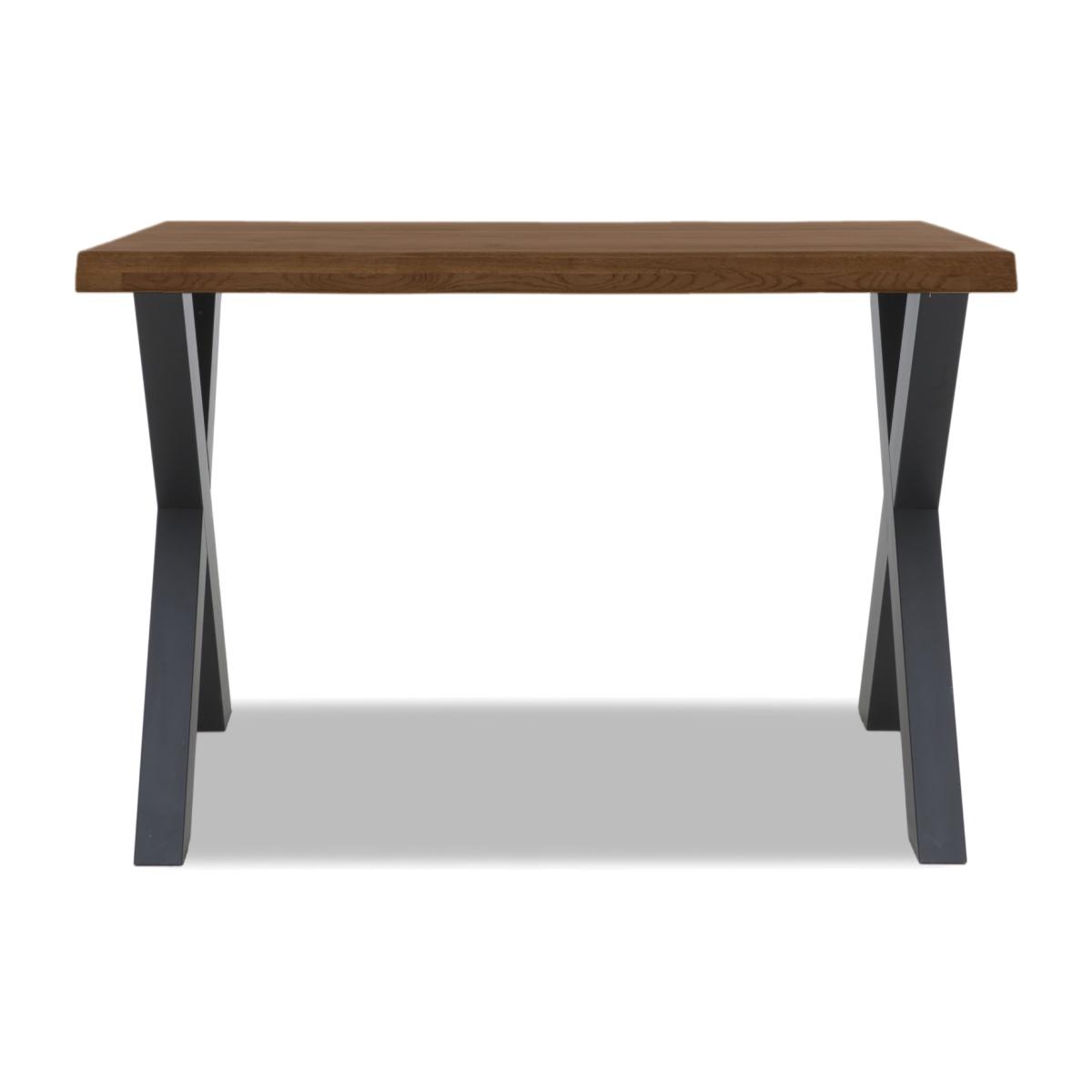 The Terra range combines the warmth of rustic style with the urban edge of industrial design – and it does it beautifully. Expertly handcrafted from solid natural oak, every piece boasts impeccable craftsmanship with knots and markings on full display. Its distinctive black metal legs and natural warmth make this a statement range for design-led interiors and relaxed dining spaces alike. And with a handcrafted padded bench or soft, faux leather cantilevered chairs, there’s plenty of comfy perches to choose from. Simply sit back, tuck in and enjoy your meal in comfort. The Terra range is fully bespoke with a wide range of options for table top edges, thickness, size and colour, alongside several striking leg options. Create your unique design today. This industrial bar table is a masterclass of compact design. The handcrafted solid oak top has beautiful natural raw edges and the X-shaped legs are made of black metal. By Bodahl. Why you'll love it This industrial Bodahl bar table makes casual kitchen dining so stylish. At last – a compact version of our popular Bodahl Terra range. Handcrafted 100% solid oak top in a choice of colours and finishes. A protective matt lacquer makes this an enduring piece. Table has natural raw edges. Black metal X-shaped legs. In 2 sizes, each available in 2 edge depths. Only at Furniture Village. This bar table is part of the Bodahl Compact Terra collection. What you need to know Made of solid oak and metal. 140 x 80 cm bar table seats 4 to 6. 160 x 90 cm bar table seats 6 to 8. Both sizes are available in 2 edge depths. Oak top may display knots, saw marks and variations in tone and texture. Metal legs are finished by hand and may show marks. Use a clean, damp cloth to clean the oak top.