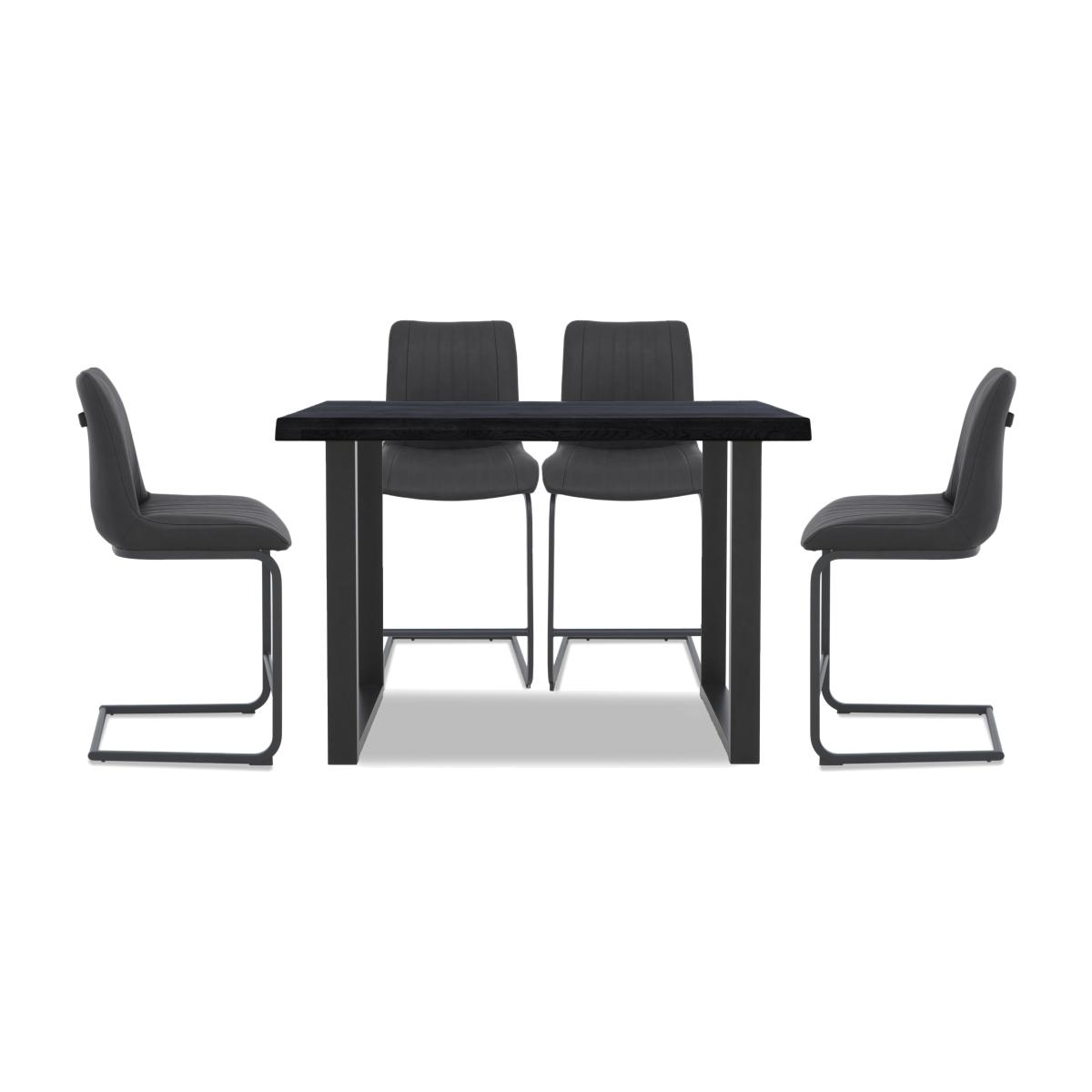 Bodahl - Compact Terra Raw Edge Table with U-Shaped Legs and 4 Grey Terra Bar Stools - 160-cm - Mocca Black