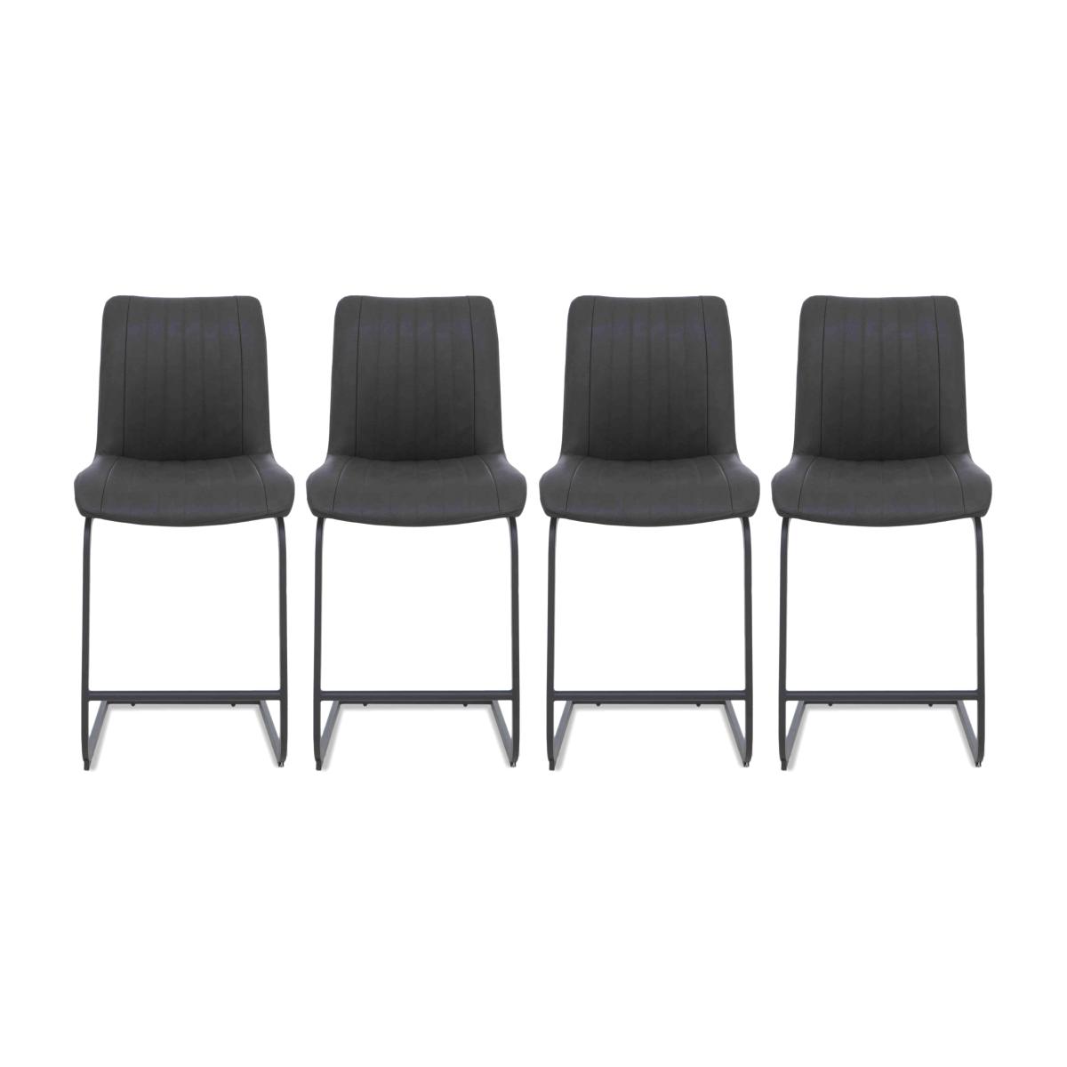 The Terra range combines the warmth of rustic style with the urban edge of industrial design – and it does it beautifully. Expertly handcrafted from solid natural oak, every piece boasts impeccable craftsmanship with knots and markings on full display. Its distinctive black metal legs and natural warmth make this a statement range for design-led interiors and relaxed dining spaces alike. And with a handcrafted padded bench or soft, faux leather cantilevered chairs, there’s plenty of comfy perches to choose from. Simply sit back, tuck in and enjoy your meal in comfort. The Terra range is fully bespoke with a wide range of options for table top edges, thickness, size and colour, alongside several striking leg options. Create your unique design today. Complete your bar table dining setup with this set of four bar stools. Made by Bodahl and exclusive to Furniture Village, they’re both stylish and comfortable. Why you'll love it Set of 4 bar stools makes any bar table more fabulous. Cool industrial style for modern kitchen diners. Fluted faux leather upholstery in a choice of colour. Black metal cantilever bases with footrests. Seat back handles for manoeuvrability. These bar stools look perfect with any of the range’s bar tables. Only at Furniture Village. This set of 4 bar stools is part of the Bodahl Compact Terra collection. What you need to know Metal frames and legs. Foam cushioning.