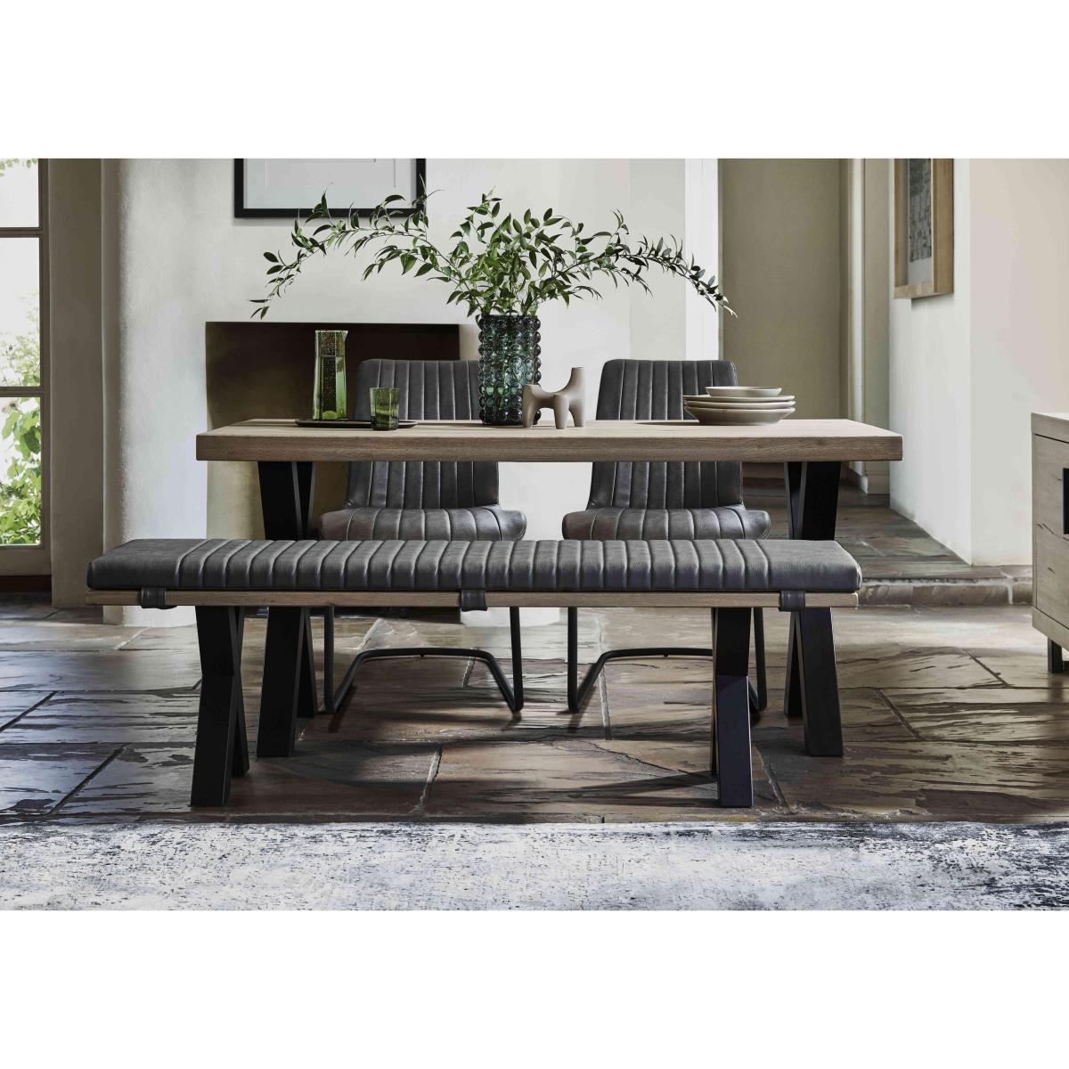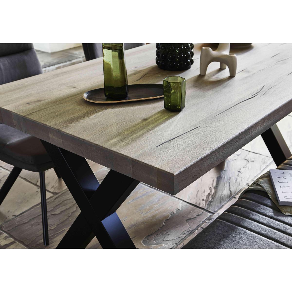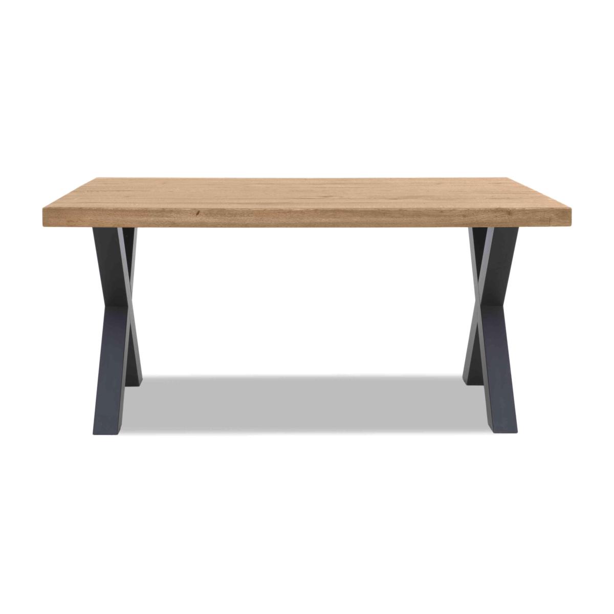 The Terra range combines the warmth of rustic style with the urban edge of industrial design – and it does it beautifully. Expertly handcrafted from solid natural oak, every piece boasts impeccable craftsmanship with knots and markings on full display. Its distinctive black metal legs and natural warmth make this a statement range for design-led interiors and relaxed dining spaces alike. And with a handcrafted padded bench or soft, faux leather cantilevered chairs, there’s plenty of comfy perches to choose from. Simply sit back, tuck in and enjoy your meal in comfort. The Terra range is fully bespoke with a wide range of options for table top edges, thickness, size and colour, alongside several striking leg options. Create your unique design today. Why you'll love it Beautiful industrial oak dining table created for modern homes. At last – a compact version of our popular Bodahl Terra range. Handcrafted 100% solid oak table top. A protective matt lacquer makes this an enduring piece. Table has smooth straight edges that are 6 cm deep. Black metal X-shaped legs. Only at Furniture Village. This dining table is part of the Bodahl Compact Terra collection. What you need to know Made of solid oak and metal. 140 x 80 cm dining table seats 4 to 6. Oak top may display knots, saw marks and variations in tone and texture. Metal legs are finished by hand and may show marks. Use a clean, damp cloth to clean the oak top.