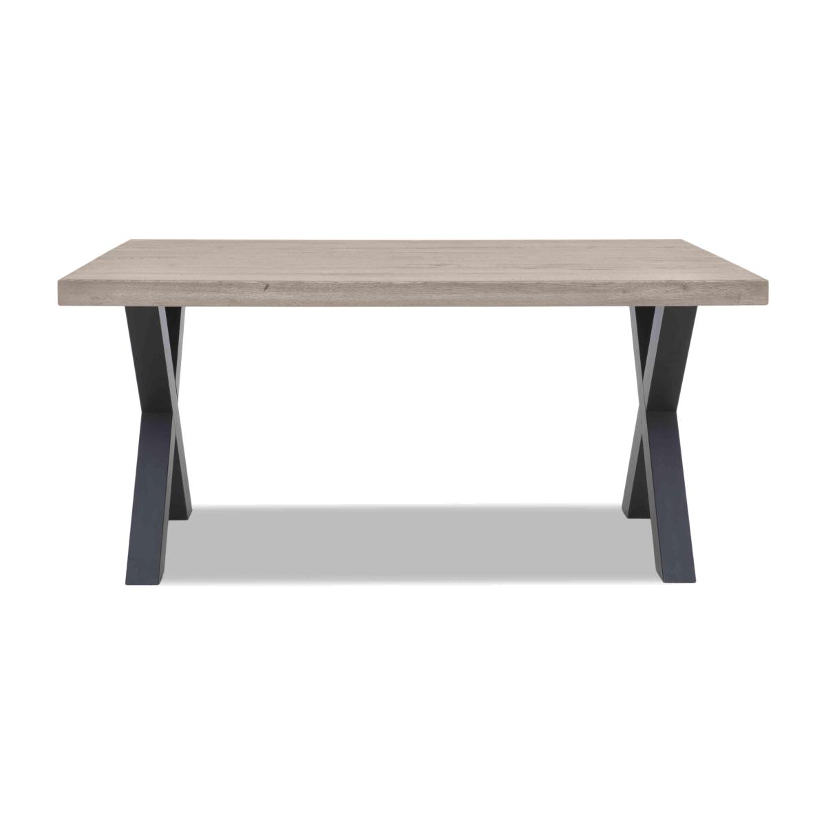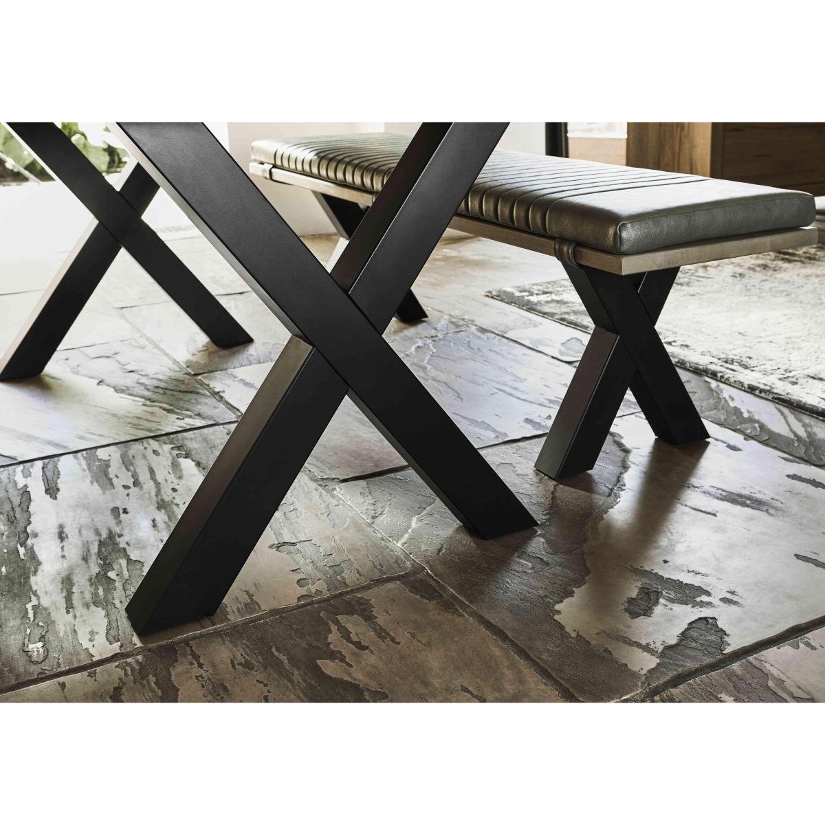 The Terra range combines the warmth of rustic style with the urban edge of industrial design – and it does it beautifully. Expertly handcrafted from solid natural oak, every piece boasts impeccable craftsmanship with knots and markings on full display. Its distinctive black metal legs and natural warmth make this a statement range for design-led interiors and relaxed dining spaces alike. And with a handcrafted padded bench or soft, faux leather cantilevered chairs, there’s plenty of comfy perches to choose from. Simply sit back, tuck in and enjoy your meal in comfort. The Terra range is fully bespoke with a wide range of options for table top edges, thickness, size and colour, alongside several striking leg options. Create your unique design today. This fabulous industrial dining table with solid oak top and black metal legs is the perfect size for modern homes and apartments. In a choice of colours and finishes. Why you'll love it Beautiful industrial oak dining table created for modern homes. At last – a compact version of our popular Bodahl Terra range. Handcrafted 100% solid oak table top in a choice of colours and finishes. A protective matt lacquer makes this an enduring piece. Table has smooth straight edges that are 6 cm deep. Black metal X-shaped legs. In 2 sizes, each available in 2 edge depths. It’s extendable – extra leaves can be purchased separately. Only at Furniture Village. This dining table is part of the Bodahl Compact Terra collection. What you need to know Made of solid oak and metal. 140 x 80 cm dining table seats 4 to 6. 160 x 90 cm dining table seats 6 to 8. Both sizes are available in 2 edge depths. Each size can accommodate 2 extension leaves (not included) to seat 4 more people. Oak top may display knots, saw marks and variations in tone and texture. Metal legs are finished by hand and may show marks. Use a clean, damp cloth to clean the oak top.