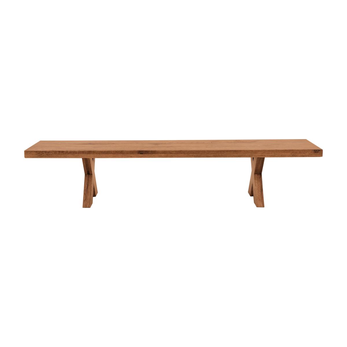 Striking industrial style meets the warmth and familiarity of rustic oak in the Bodahl Loki range, exclusively available at Furniture Village. At the heart of this beautiful collection is a handcrafted solid oak dining table set on a star-shaped base. It’s offered in seven sizes and eight finishes, and with even more customisable options available it’s easy to create the perfect dining table for your home and family. Pair it with the range’s faux leather cantilever dining chairs and dining bench – or make life even easier by choosing one of the ready-made dining sets – and complete the look with a stylish sideboard. This solid oak dining bench is stylish as well as space-saving. Perfect for adults as well as kids, its beautiful rustic oak finish will look fabulous in any dining space. Why you'll love it This solid oak dining bench with X-shaped base is just so inviting. Traditional rustic style updated for contemporary dining spaces. Handcrafted from high-quality solid European oak. Finished with a protective, woodgrain-enhancing matt lacquer. In 8 beautiful wood colour finishes. Choose from 7 sizes – the largest seats 14. Exclusively available at Furniture Village. This dining bench is part of the Bodahl Loki range. What you need to know The 180 cm bench seats 2, 200 cm 3, 220 cm 4, 240 cm 4, 260 cm 5, 280 cm 5, 300 cm 6. Every bench features unique and natural marks, knots and colour variation. Saw cuts are an intentional feature and will vary in frequency and location from bench to bench. Easy to care for – simply wipe with a clean, non-abrasive damp cloth.