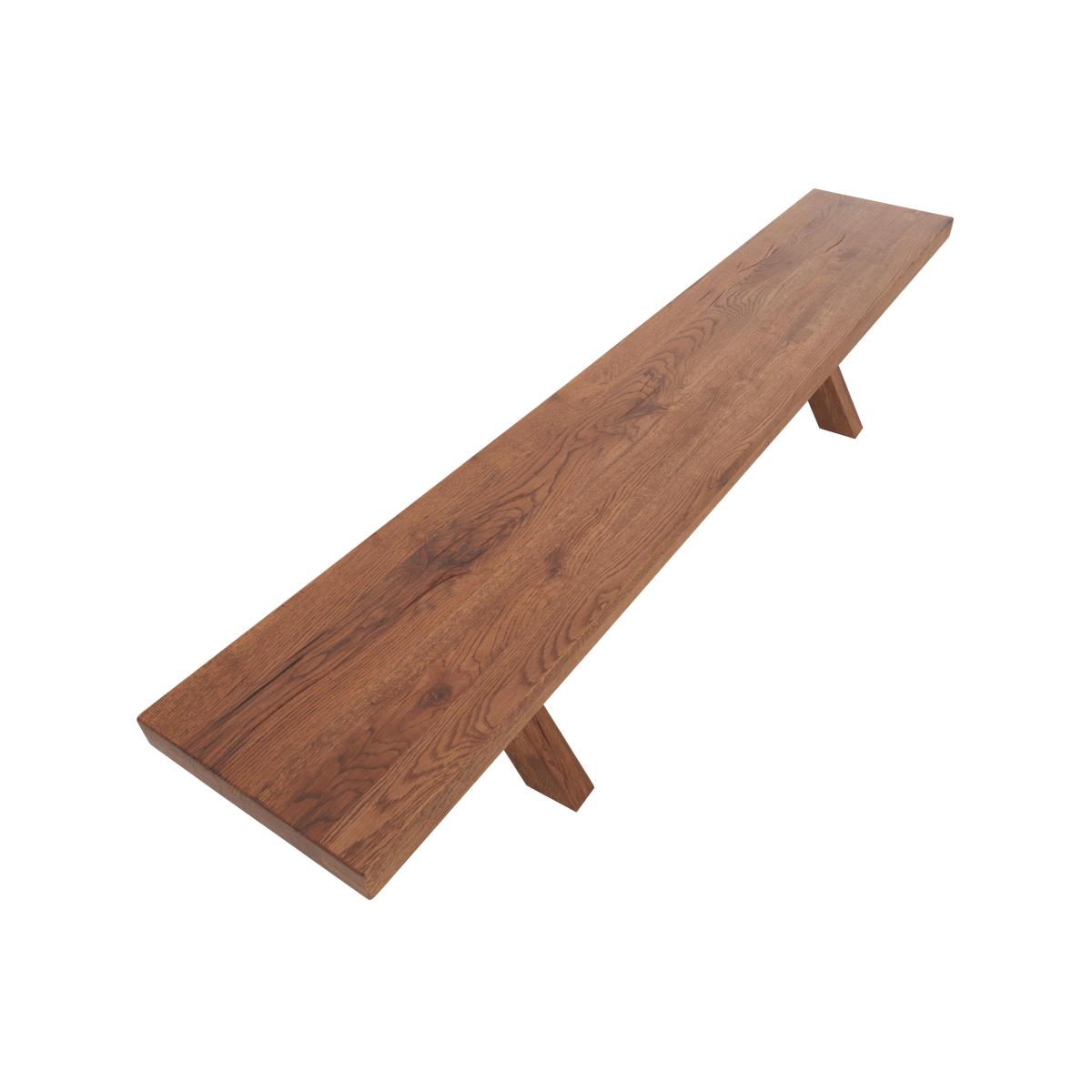 Striking industrial style meets the warmth and familiarity of rustic oak in the Bodahl Loki range, exclusively available at Furniture Village. At the heart of this beautiful collection is a handcrafted solid oak dining table set on a star-shaped base. It’s offered in seven sizes and eight finishes, and with even more customisable options available it’s easy to create the perfect dining table for your home and family. Pair it with the range’s faux leather cantilever dining chairs and dining bench – or make life even easier by choosing one of the ready-made dining sets – and complete the look with a stylish sideboard. This solid oak dining bench is stylish as well as space-saving. Perfect for adults as well as kids, its beautiful rustic oak finish will look fabulous in any dining space. Why you'll love it This solid oak dining bench with X-shaped base is just so inviting. Traditional rustic style updated for contemporary dining spaces. Handcrafted from high-quality solid European oak. Finished with a protective, woodgrain-enhancing matt lacquer. In 8 beautiful wood colour finishes. Choose from 7 sizes – the largest seats 14. Exclusively available at Furniture Village. This dining bench is part of the Bodahl Loki range. What you need to know The 180 cm bench seats 2, 200 cm 3, 220 cm 4, 240 cm 4, 260 cm 5, 280 cm 5, 300 cm 6. Every bench features unique and natural marks, knots and colour variation. Saw cuts are an intentional feature and will vary in frequency and location from bench to bench. Easy to care for – simply wipe with a clean, non-abrasive damp cloth.