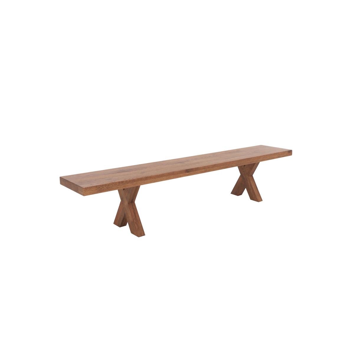 Striking industrial style meets the warmth and familiarity of rustic oak in the Bodahl Loki range, exclusively available at Furniture Village. At the heart of this beautiful collection is a handcrafted solid oak dining table set on a star-shaped base. It’s offered in seven sizes and eight finishes, and with even more customisable options available it’s easy to create the perfect dining table for your home and family. Pair it with the range’s faux leather cantilever dining chairs and dining bench – or make life even easier by choosing one of the ready-made dining sets – and complete the look with a stylish sideboard. This solid oak dining bench is stylish as well as space-saving. Perfect for adults as well as kids, its beautiful rustic oak finish will look fabulous in any dining space. Why you'll love it This solid oak dining bench with X-shaped base is just so inviting. Traditional rustic style updated for contemporary dining spaces. Handcrafted from high-quality solid European oak. Finished with a protective, woodgrain-enhancing matt lacquer. In 8 beautiful wood colour finishes. Choose from 7 sizes – the largest seats 14. Exclusively available at Furniture Village. This dining bench is part of the Bodahl Loki range. What you need to know The 180 cm bench seats 2, 200 cm 3, 220 cm 4, 240 cm 4, 260 cm 5, 280 cm 5, 300 cm 6. Every bench features unique and natural marks, knots and colour variation. Saw cuts are an intentional feature and will vary in frequency and location from bench to bench. Easy to care for – simply wipe with a clean, non-abrasive damp cloth.