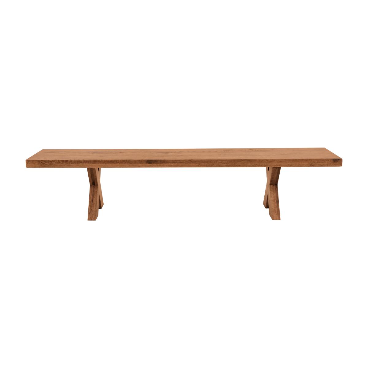Striking industrial style meets the warmth and familiarity of rustic oak in the Bodahl Loki range, exclusively available at Furniture Village. At the heart of this beautiful collection is a handcrafted solid oak dining table set on a star-shaped base. It’s offered in seven sizes and eight finishes, and with even more customisable options available it’s easy to create the perfect dining table for your home and family. Pair it with the range’s faux leather cantilever dining chairs and dining bench – or make life even easier by choosing one of the ready-made dining sets – and complete the look with a stylish sideboard. This solid oak dining bench is stylish as well as space-saving. Perfect for adults as well as kids, its beautiful rustic oak finish will look fabulous in any dining space. Why you'll love it. This solid oak dining bench with X-shaped base is just so inviting. Traditional rustic style updated for contemporary dining spaces. Handcrafted from high-quality solid European oak. Finished with a protective, woodgrain-enhancing matt lacquer. In 8 beautiful wood colour finishes. Choose from 7 sizes – the largest seats 14. Exclusively available at Furniture Village. This dining bench is part of the Bodahl Loki range. What you need to know. The 180 cm bench seats 2, 200 cm 3, 220 cm 4, 240 cm 4, 260 cm 5, 280 cm 5, 300 cm 6. Every bench features unique and natural marks, knots and colour variation. Saw cuts are an intentional feature and will vary in frequency and location from bench to bench. Easy to care for – simply wipe with a clean, non-abrasive damp cloth.