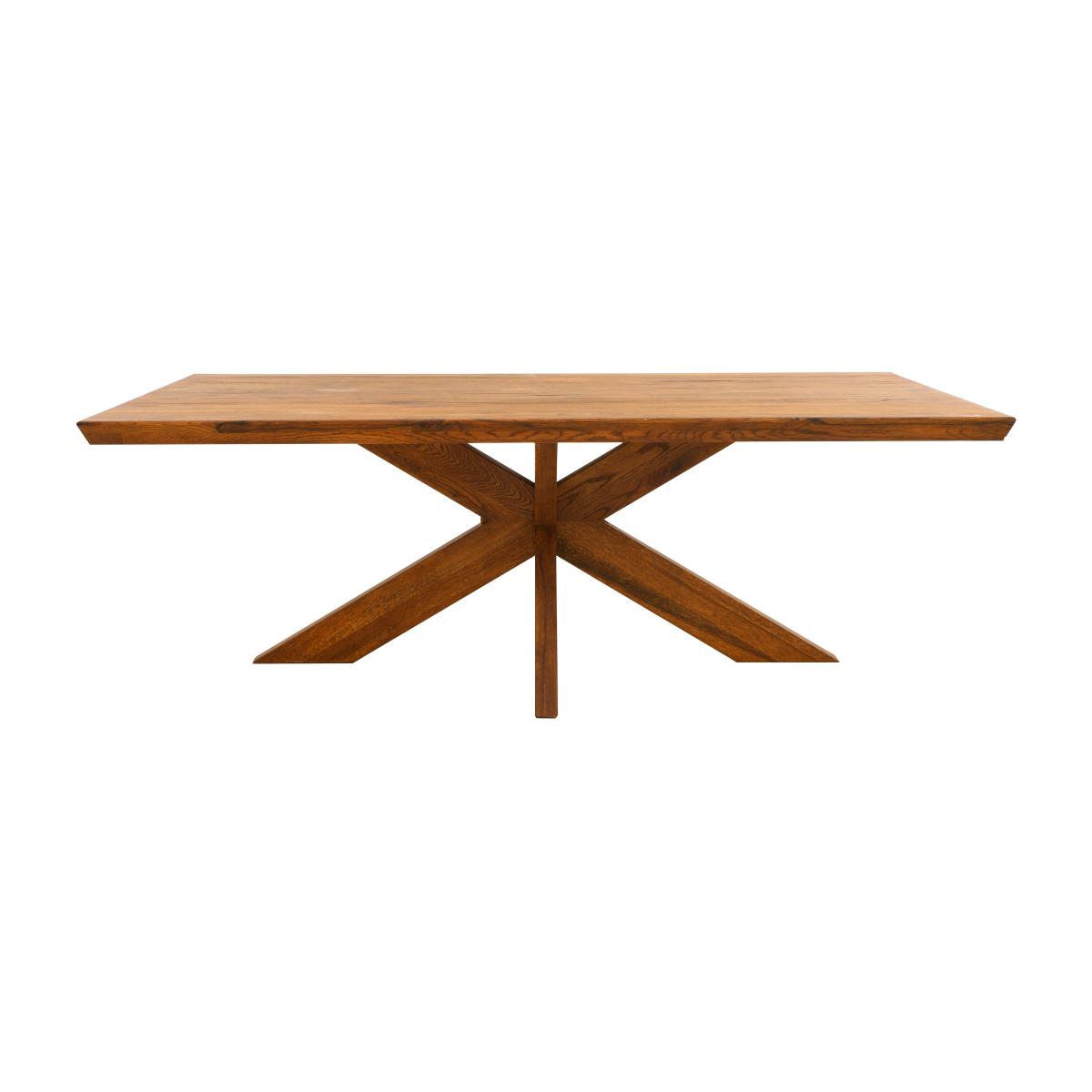 Striking industrial style meets the warmth and familiarity of rustic oak in the Bodahl Loki range, exclusively available at Furniture Village. At the heart of this beautiful collection is a handcrafted solid oak dining table set on a star-shaped base. It’s offered in seven sizes and eight finishes, and with even more customisable options available it’s easy to create the perfect dining table for your home and family. Pair it with the range’s faux leather cantilever dining chairs and dining bench – or make life even easier by choosing one of the ready-made dining sets – and complete the look with a stylish sideboard. The traditional farmhouse table gets a stylish update. With its solid oak top and striking star-shaped base, this is a dining table that’s perfect for both every day and special occasion dining. Why you'll love it This solid oak dining table with striking star-shaped base is just so inviting. Traditional rustic style updated for contemporary dining spaces. Slanted table top edge adds a touch of elegance. Handcrafted from high-quality solid European oak. Finished with a protective, woodgrain-enhancing matt lacquer. In 8 beautiful wood colour finishes. Choose from 7 sizes – the largest seats 14. Need an even larger table? Add extension leaves, available separately. Exclusively available at Furniture Village. This dining table is part of the Bodahl Loki range. What you need to know The 180 cm table seats 4, 200 cm 6, 220 cm 8, 240 cm 10, 260 cm 12, 280 cm 14, 300 cm 14. All sizes can accommodate up to 2 extension leaves, available separately. Every dining table features unique and natural marks, knots and colour variation. Saw cuts are an intentional feature and will vary in frequency and location from table to table. Please be aware that this dining table is extremely heavy. We recommend using coasters and placemats at all times. Easy to care for – simply wipe with a clean, non-abrasive damp cloth.