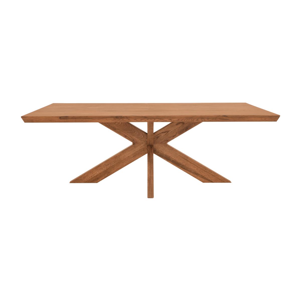 Striking industrial style meets the warmth and familiarity of rustic oak in the Bodahl Loki range, exclusively available at Furniture Village. At the heart of this beautiful collection is a handcrafted solid oak dining table set on a star-shaped base. It’s offered in seven sizes and eight finishes, and with even more customisable options available it’s easy to create the perfect dining table for your home and family. Pair it with the range’s faux leather cantilever dining chairs and dining bench – or make life even easier by choosing one of the ready-made dining sets – and complete the look with a stylish sideboard. The traditional farmhouse table gets a stylish update. With its solid oak top and striking star-shaped base, this is a dining table that’s perfect for both every day and special occasion dining. Why you'll love it. This solid oak dining table with striking star-shaped base is just so inviting. Traditional rustic style updated for contemporary dining spaces. Slanted table top edge adds a touch of elegance. Handcrafted from high-quality solid European oak. Finished with a protective, woodgrain-enhancing matt lacquer. In 8 beautiful wood colour finishes. Choose from 7 sizes – the largest seats 14. Need an even larger table? Add extension leaves, available separately. Exclusively available at Furniture Village. This dining table is part of the Bodahl Loki range. What you need to know. The 180 cm table seats 4, 200 cm 6, 220 cm 8, 240 cm 10, 260 cm 12, 280 cm 14, 300 cm 14. All sizes can accommodate up to 2 extension leaves, available separately. Every dining table features unique and natural marks, knots and colour variation. Saw cuts are an intentional feature and will vary in frequency and location from table to table. Please be aware that this dining table is extremely heavy. We recommend using coasters and placemats at all times. Easy to care for – simply wipe with a clean, non-abrasive damp cloth.