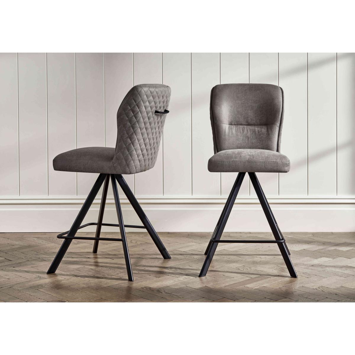 Striking industrial style meets the warmth and familiarity of rustic oak in the Bodahl Loki range, exclusively available at Furniture Village. At the heart of this beautiful collection is a handcrafted solid oak dining table set on a star-shaped base. It’s offered in seven sizes and eight finishes, and with even more customisable options available it’s easy to create the perfect dining table for your home and family. Pair it with the range’s faux leather cantilever dining chairs and dining bench – or make life even easier by choosing one of the ready-made dining sets – and complete the look with a stylish sideboard. Enjoy a casual breakfast or an intimate dinner for two with this pair of stylish, urban-cool bar stools. By Bodahl and exclusive to Furniture Village. Why you'll love it Fashionable industrial style. Seats are shaped for comfort and support. Swivel bases make the most of your bar table dining space. Black metal legs and footrests. Soft fabric upholstery in a choice of colours. Also offered individually and in sets of 4. Exclusively available at Furniture Village. This pair of swivel bar stools is part of the Bodahl Loki range. What you need to know Foam seat cushioning.