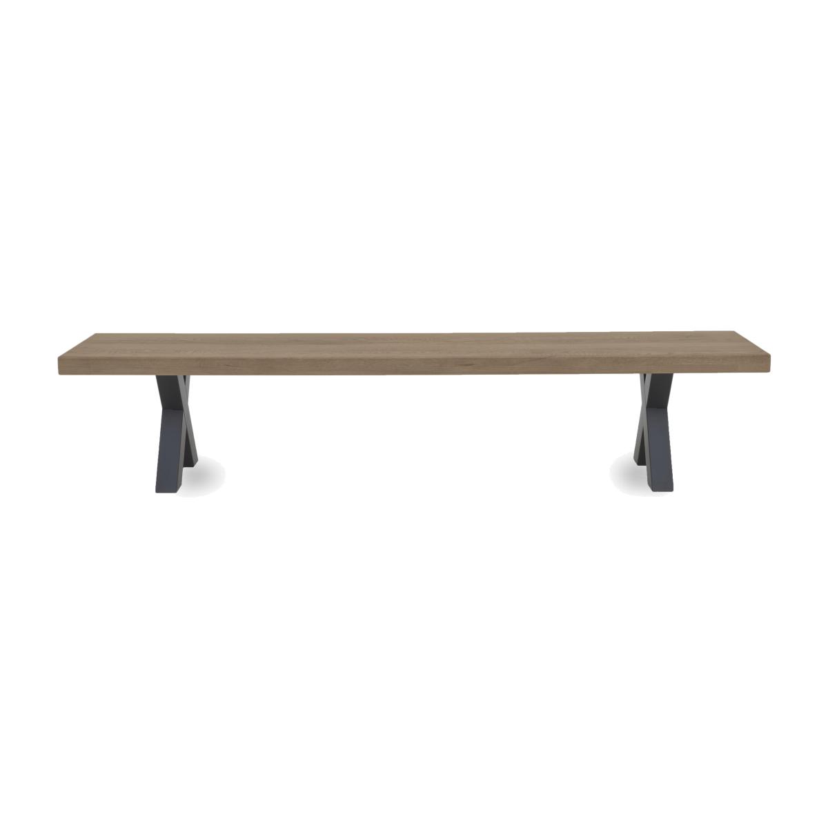 Effortless industrial style at a great-value price is yours with our Bodahl Njord collection. The range’s dining table showcases a distinctive look and finish – a handcrafted solid rustic oak top with beautiful natural raw edges, a sure sign of authenticity and quality, and a star-shaped base in wood or metal. As with all Bodahl furniture, customisability is at the heart of Bodahl Njord’s unique design aesthetic. The dining table is available in bespoke edge styles and a wide choice of finishes, table sizes and edge depths, and as part of a dining set with dining chairs and dining bench seating or as a standalone piece. The Bodahl Njord collection is exclusive to Furniture Village. This could be the perfect dining bench. With a handcrafted oak seat and chunky metal legs, it’s the epitome of industrial style. And, like all dining benches, it’s a practical choice. Why you'll love it This oak dining bench is beautiful as well as versatile. Fabulous industrial style at an equally fabulous price. Handcrafted solid rustic oak in a choice of colours and finishes. A protective matt lacquer enhances the wood and makes it even more hardwearing. Striking X-shaped metal legs. In a wide choice of sizes. A Furniture Village exclusive. This dining bench is part of the Bodahl Njord collection. What you need to know Made of solid oak and metal. 180 cm dining bench seats 3, 200 cm seats 3 to 4, 220 cm seats 4, 240 cm seats 4 to 5. All bench sizes above are available in 2 edge depths, 3 cm and 6 cm. Oak bench top may display knots, saw marks and variations in tone and texture. Metal legs are finished by hand and may show marks. Use a clean, damp cloth to clean the oak top.