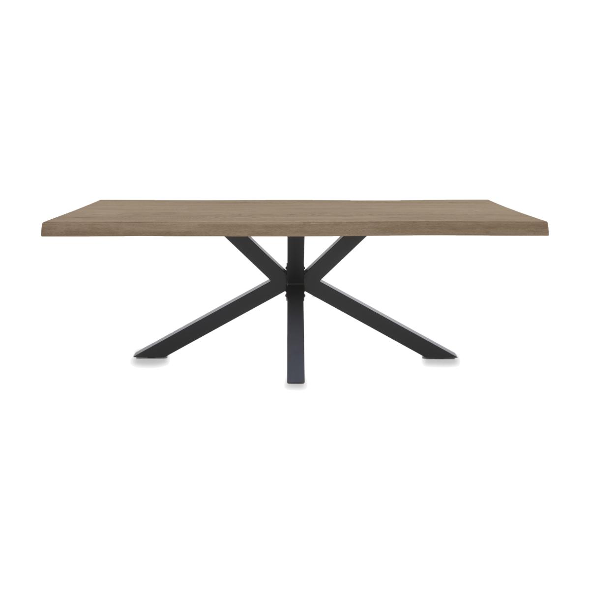 Effortless industrial style at a great-value price is yours with our Bodahl Njord collection. The range’s dining table showcases a distinctive look and finish – a handcrafted solid rustic oak top with beautiful natural raw edges, a sure sign of authenticity and quality, and a star-shaped base in wood or metal. As with all Bodahl furniture, customisability is at the heart of Bodahl Njord’s unique design aesthetic. The dining table is available in bespoke edge styles and a wide choice of finishes, table sizes and edge depths, and as part of a dining set with dining chairs and dining bench seating or as a standalone piece. The Bodahl Njord collection is exclusive to Furniture Village. Rustic oak and sturdy metal meet and meld beautifully in this stunning industrial dining table. The table top showcases the oak’s natural raw edge. Simply stunning. Why you'll love it This oak dining table with authentic raw edge takes urban design to a new level. Fabulous industrial style at an equally fabulous price. Handcrafted solid rustic oak top in a choice of colours and finishes. A protective matt lacquer enhances the wood and makes it even more hardwearing. Beautiful natural raw table edges. Striking metal star base – the shape makes it easier to seat more in comfort. In a wide choice of sizes seating up to 10. Need it bigger? All sizes can be extended with extra leaves, available separately. A Furniture Village exclusive. This raw edge dining table is part of the Bodahl Njord collection. What you need to know Made of solid oak and metal. 180 and 200 cm dining tables seat 6 to 8. 220 and 240 cm dining tables seat 8 to 10. All table sizes above are available in 2 edge depths, 4 cm and 6 cm. Each table can accommodate 2 extension leaves (not included) to seat 4 more. Oak top may display knots, saw marks and variations in tone and texture. Metal base is finished by hand and may show marks. Use a clean, damp cloth to clean the oak top.