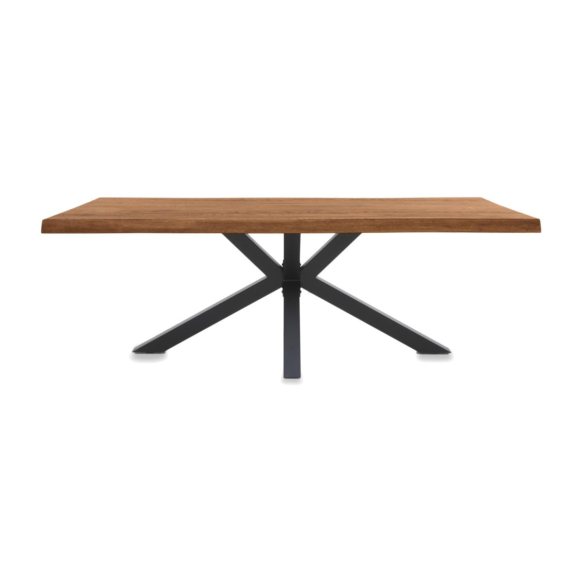 Effortless industrial style at a great-value price is yours with our Bodahl Njord collection. The range’s dining table showcases a distinctive look and finish – a handcrafted solid rustic oak top with beautiful natural raw edges, a sure sign of authenticity and quality, and a star-shaped base in wood or metal. As with all Bodahl furniture, customisability is at the heart of Bodahl Njord’s unique design aesthetic. The dining table is available in bespoke edge styles and a wide choice of finishes, table sizes and edge depths, and as part of a dining set with dining chairs and dining bench seating or as a standalone piece. The Bodahl Njord collection is exclusive to Furniture Village. Rustic oak and sturdy metal meet and meld beautifully in this stunning industrial dining table. The table top showcases the oak’s natural raw edge. Simply stunning. Why you'll love it This oak dining table with authentic raw edge takes urban design to a new level. Fabulous industrial style at an equally fabulous price. Handcrafted solid rustic oak top in a choice of colours and finishes. A protective matt lacquer enhances the wood and makes it even more hardwearing. Beautiful natural raw table edges. Striking metal star base – the shape makes it easier to seat more in comfort. In a wide choice of sizes seating up to 10. Need it bigger? All sizes can be extended with extra leaves, available separately. A Furniture Village exclusive. This raw edge dining table is part of the Bodahl Njord collection. What you need to know Made of solid oak and metal. 180 and 200 cm dining tables seat 6 to 8. 220 and 240 cm dining tables seat 8 to 10. All table sizes above are available in 2 edge depths, 4 cm and 6 cm. Each table can accommodate 2 extension leaves (not included) to seat 4 more. Oak top may display knots, saw marks and variations in tone and texture. Metal base is finished by hand and may show marks. Use a clean, damp cloth to clean the oak top.