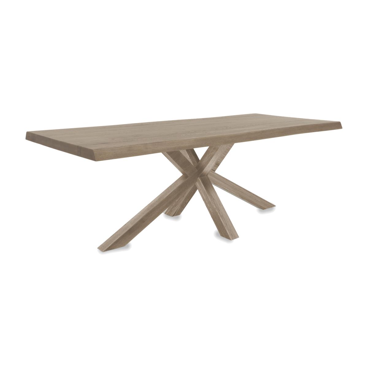Effortless industrial style at a great-value price is yours with our Bodahl Njord collection. The range’s dining table showcases a distinctive look and finish – a handcrafted solid rustic oak top with beautiful natural raw edges, a sure sign of authenticity and quality, and a star-shaped base in wood or metal. As with all Bodahl furniture, customisability is at the heart of Bodahl Njord’s unique design aesthetic. The dining table is available in bespoke edge styles and a wide choice of finishes, table sizes and edge depths, and as part of a dining set with dining chairs and dining bench seating or as a standalone piece. The Bodahl Njord collection is exclusive to Furniture Village. Our striking Njord dining table takes industrial style to a new level thanks to its star-shaped wooden base. Its raw edges really showcase the natural beauty of the rustic oak top. Why you'll love it With its authentic raw edges and star base, this dining table is a one-of-a kind. Fabulous industrial style at an equally fabulous price. Handcrafted solid rustic oak top in a choice of colours and finishes. A protective matt lacquer enhances the wood and makes it even more hardwearing. Beautiful natural raw table edges. Striking wood star base – the shape makes it easier to seat more in comfort. In a wide choice of sizes seating up to 10. Need it bigger? All sizes can be extended with extra leaves, available separately. A Furniture Village exclusive. This raw edge dining table is part of the Bodahl Njord collection. What you need to know Made of solid oak. 180 and 200 cm dining tables seat 6 to 8. 220 and 240 cm dining tables seat 8 to 10. All table sizes above are available in 2 edge depths, 4 cm and 6 cm. Each table can accommodate 2 extension leaves (not included) to seat 4 more. Oak top may display knots, saw marks and variations in tone and texture. Use a clean, damp cloth to clean the oak top.