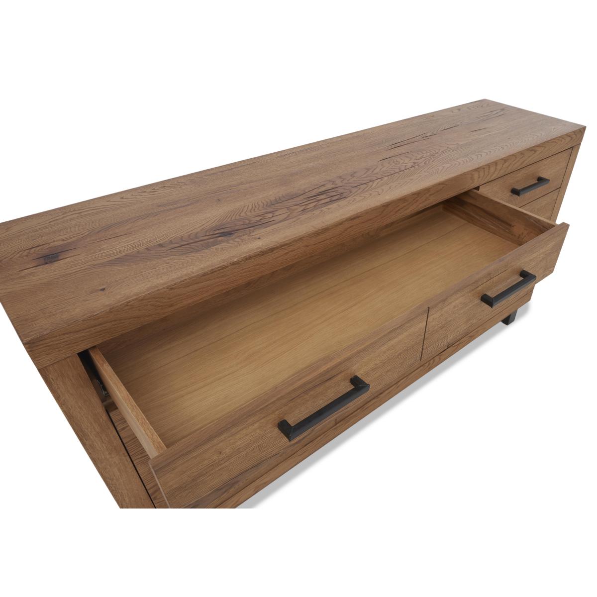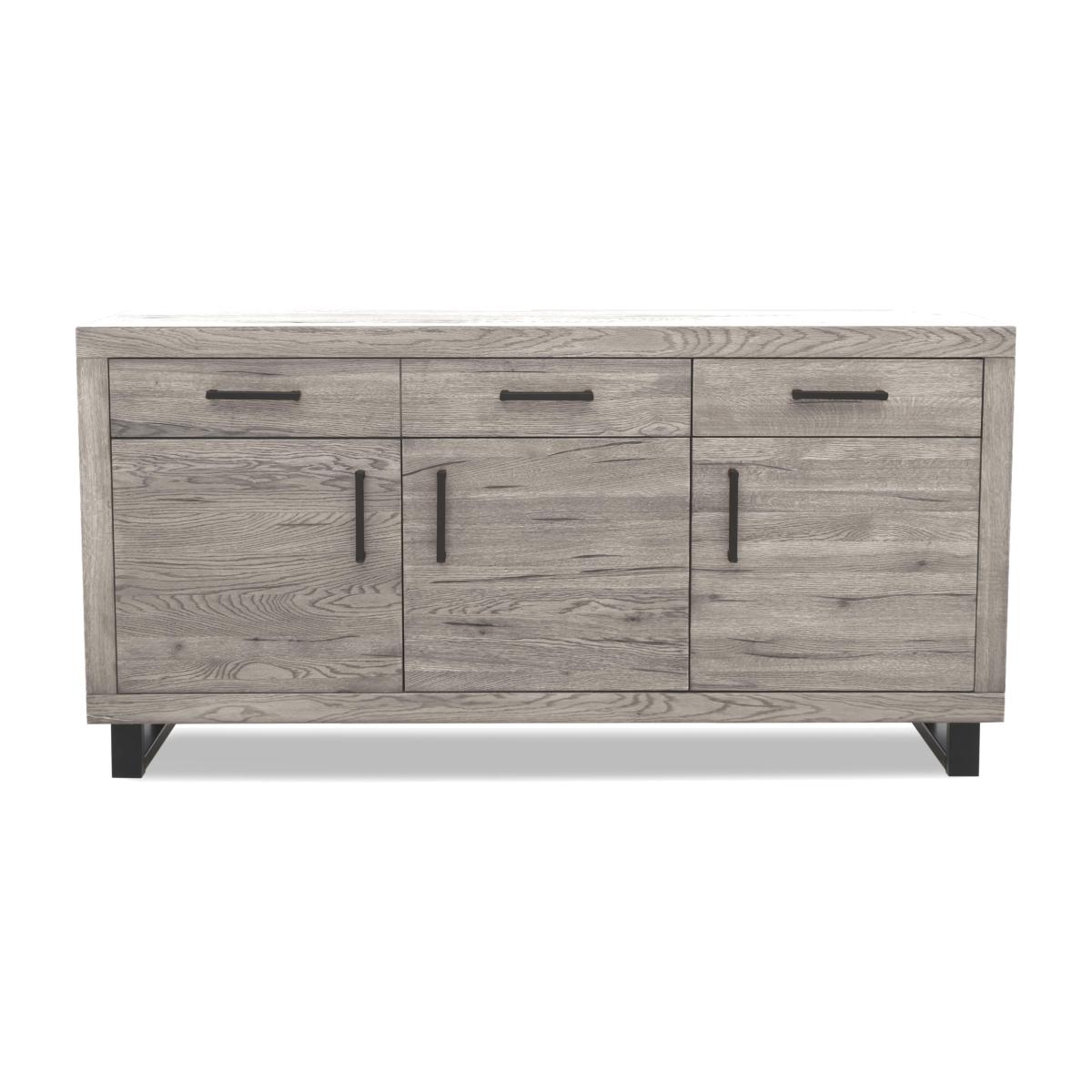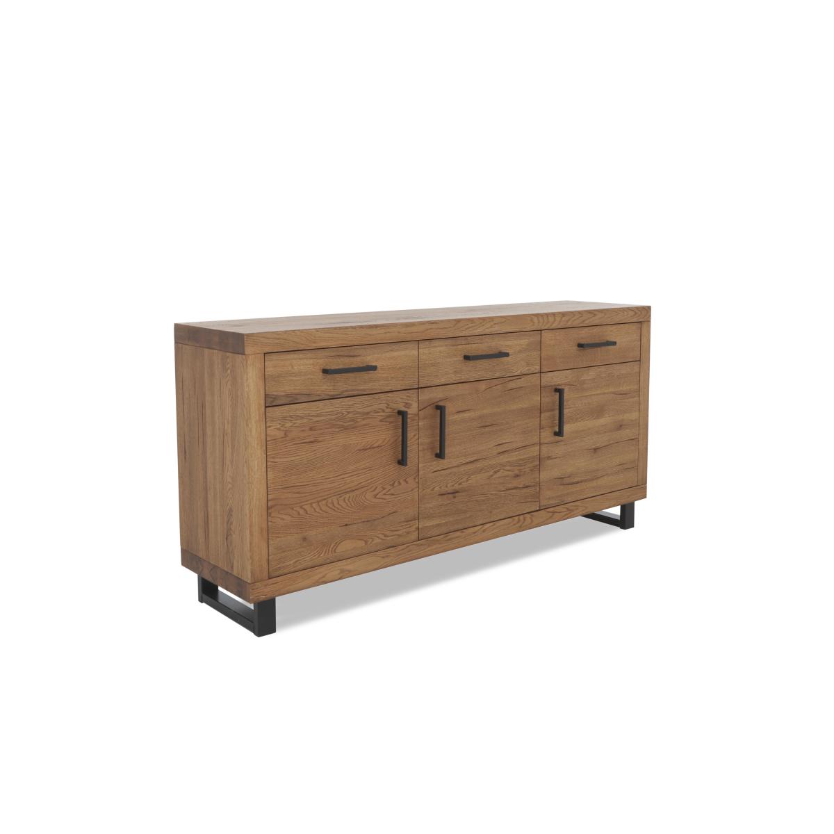 Effortless industrial style at a great-value price is yours with our Bodahl Njord collection. The range’s dining table showcases a distinctive look and finish – a handcrafted solid rustic oak top with beautiful natural raw edges, a sure sign of authenticity and quality, and a star-shaped base in wood or metal. As with all Bodahl furniture, customisability is at the heart of Bodahl Njord’s unique design aesthetic. The dining table is available in bespoke edge styles and a wide choice of finishes, table sizes and edge depths, and as part of a dining set with dining chairs and dining bench seating or as a standalone piece. The Bodahl Njord collection is exclusive to Furniture Village. This industrial sideboard has a lovely rustic oak finish, metal legs and, of course, plenty of space for dinnerware, glasses, table linens and cutlery. Why you'll love it Authentic rustic sideboard offers stylish dining room storage. Fabulous industrial style at an equally fabulous price. Handcrafted solid rustic oak in a choice of colours and finishes. A protective matt lacquer enhances the wood and makes it even more hardwearing. Metal U-shaped legs. Soft-closing drawers and cupboard doors. A Furniture Village exclusive. This sideboard is part of the Bodahl Njord collection. What you need to know Cupboards each have 1 adjustable shelf. Made of solid oak and metal. Oak may display knots, saw marks and variations in tone and texture. Use a clean, damp cloth to clean the oak top. Metal legs are finished by hand and may show marks. WARNING!