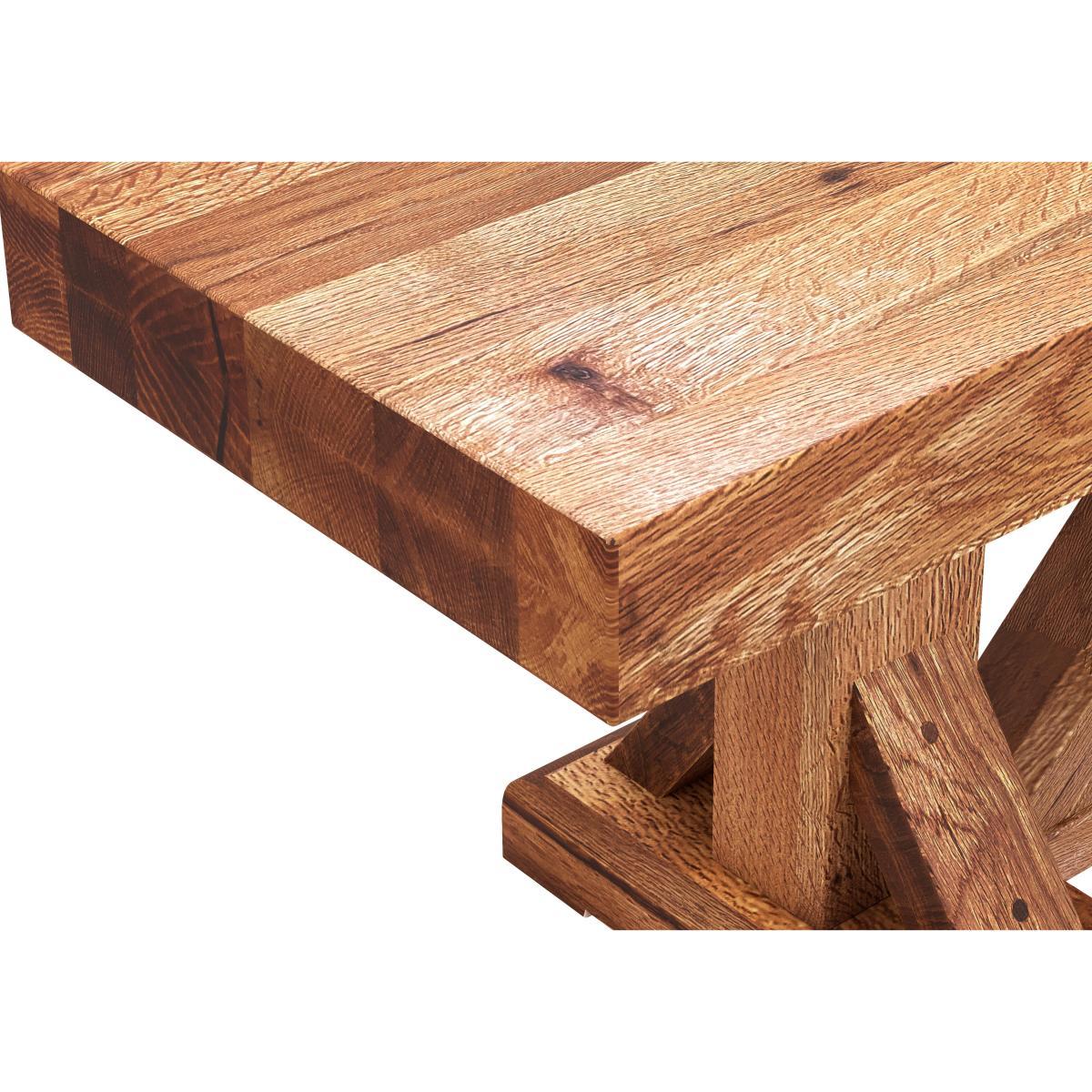 Rustic country style for the contemporary home. The dining table, with a unique handcrafted base, is made of warm and rustic solid oak. It comes in a wide choice of finishes including oiled and whitewashed. Choose a size to suit your space (the largest seats up to 14), or create your own custom size. A solid oak sideboard, oak dining bench and luxurious button backed 100% leather dining chair complete this characterful, timeless range. Make this beauty of a dining table the heart of your home. It’s made entirely of solid, rustic oak, with a substantial, handcrafted base. Choose a finish to suit your taste and a size to suit your space. Why you'll love it. Country style for the contemporary home. In 100% solid oak. Handcrafted, every table is unique. Choice of characterful finishes includes oiled and white wash. Protected by strong, family-friendly matt lacquer. Choose from seven table sizes, the largest seating up to 14. A Furniture Village exclusive, at a great value price. What you need to know. The table’s top and base are solid oak and heavy. As it is natural oak, every table is unique, with its own natural markings, knots and colour variations. We recommend using coasters and placemats at all times. Easy to care for, simply wipe with a clean, non-abrasive damp cloth. Be sure to tighten legs and bolts every 3 to 4 months. For more advice, see our Dining Care Guide. Part of the Bodahl Norse country style dining range.
