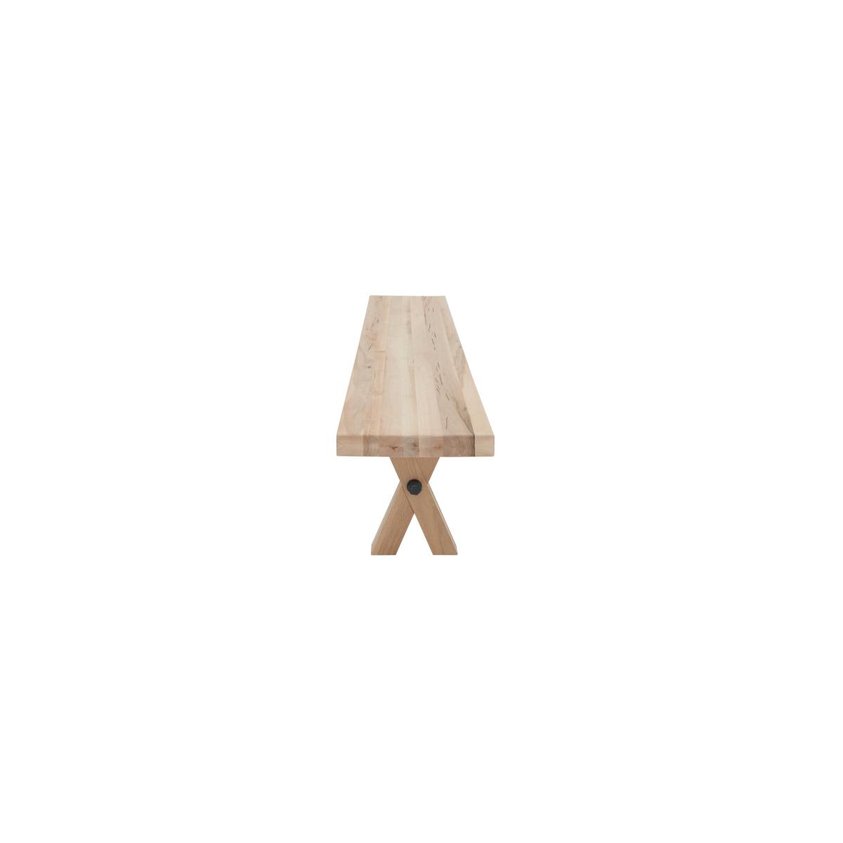 Designed and made exclusively for Furniture Village, the Odin range from Bodahl takes industrial style to a new level. Large and striking, the collection’s statement dining table features a linear metal strip that runs end to end through its solid rustic oak top, while X-shaped legs introduce a timeless rustic quality. Available in seven sizes and eight finishes, this handcrafted dining table is designed to complement any dining space, or you can create your own by customising almost every detail. The range also includes a wide choice of dining sets, dining room seating – a stylish faux leather dining chair and a solid oak dining bench – and roomy sideboards. Dining benches are known for their space-saving practicality, and this one brings plenty of industrial character to the table, too. Handcrafted from solid oak, it features a sturdy X-shaped base. Why you'll love it Characterful dining bench that’s both practical and stylish. Timeless rustic style with an industrial edge. Handcrafted from solid European oak selected for its exceptional quality. Ideal for everyday family use – it's finished with a protective matt lacquer. Choose from 8 different wood colour finishes. In 3 sizes. A Furniture Village exclusive. This dining bench is part of the Bodahl Odin range. What you need to know The 200 cm bench seats 3, 220 cm 4, 240 cm 4. Every bench features unique and natural marks, knots and colour variation. Saw cuts are an intentional feature and will vary in frequency and location from bench to bench. Easy to care for – simply wipe with a clean, non-abrasive damp cloth.