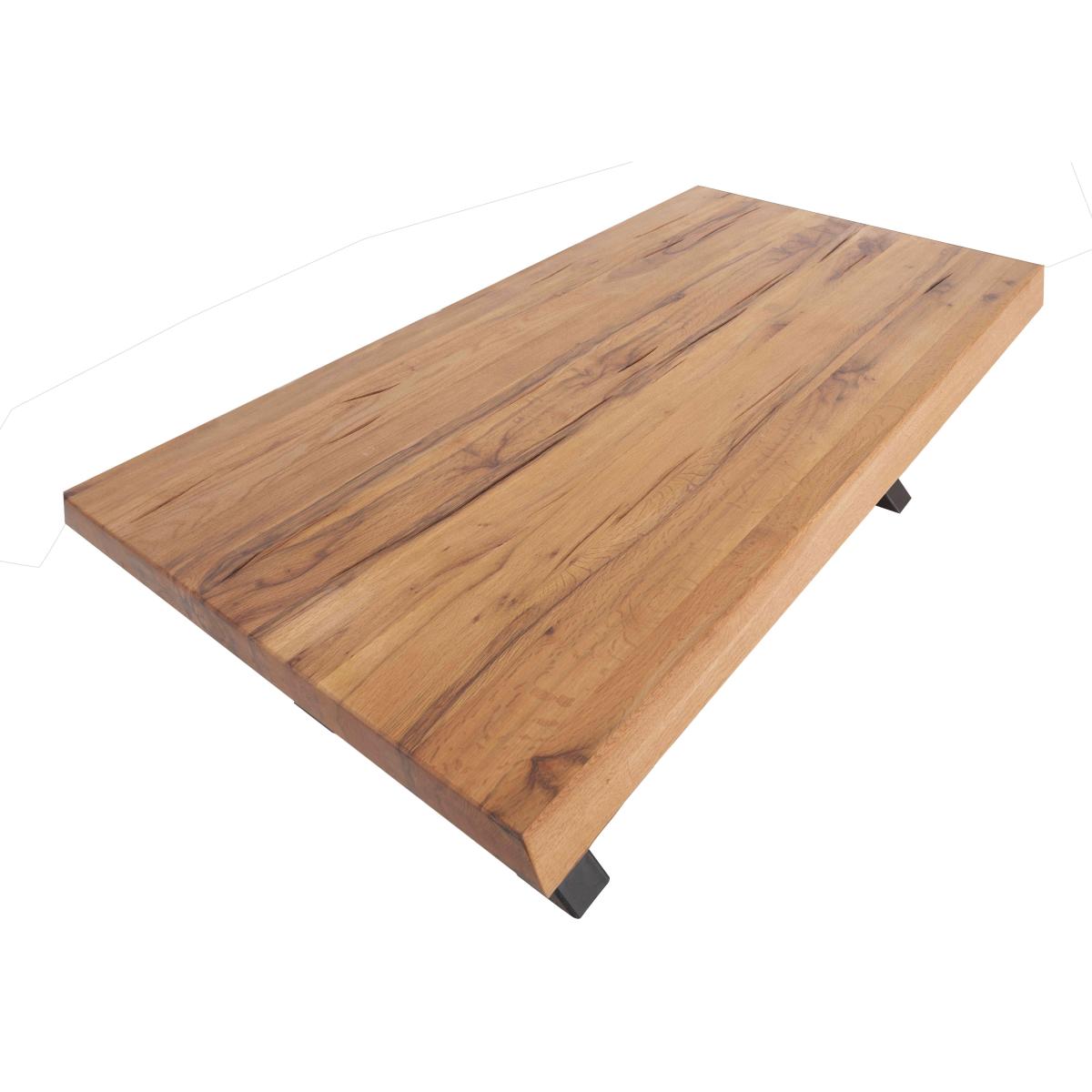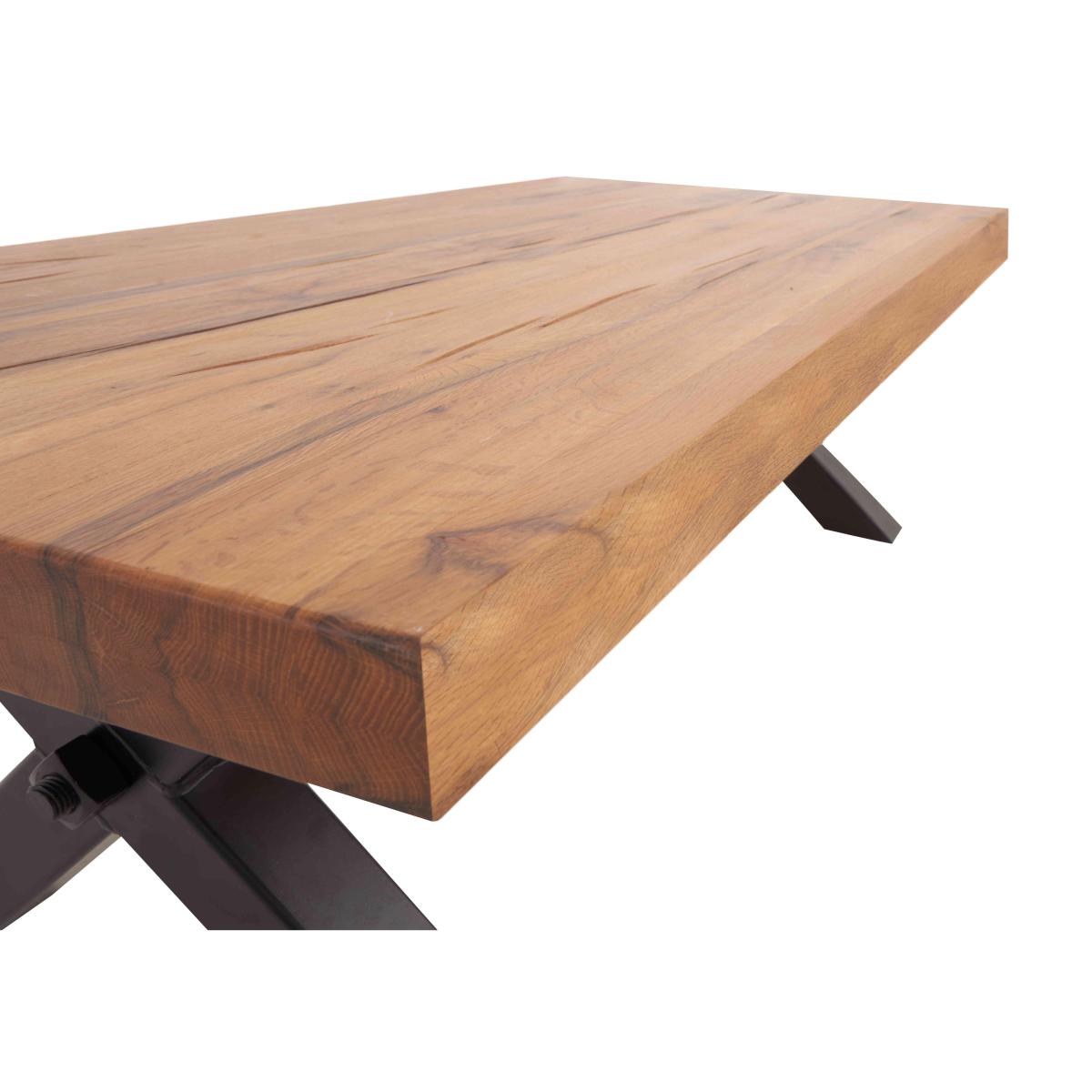 The Terra range combines the warmth of rustic style with the urban edge of industrial design – and it does it beautifully. Expertly handcrafted from solid natural oak, every piece boasts impeccable craftsmanship with knots and markings on full display. Its distinctive black metal legs and natural warmth make this a statement range for design-led interiors and relaxed dining spaces alike. And with a handcrafted padded bench or soft, faux leather cantilevered chairs, there’s plenty of comfy perches to choose from. Simply sit back, tuck in and enjoy your meal in comfort. The Terra range is fully bespoke with a wide range of options for table top edges, thickness, size and colour, alongside several striking leg options. Create your unique design today. The perfect coffee table? With its solid top, striking metal base and all-round industrial style, this one’s definitely a contender. Handmade for Furniture Village. Why you'll love it This bold rustic oak coffee table is the perfect living room centrepiece. Statement industrial style. 100% solid natural oak top has authentic knots and markings. With the range’s Kansas base – black metal X-shaped legs and cross bar. The table’s long sides have contemporary straight edges. Short sides have folded edges where the wood grain appears to fold over the edge. Choose from a wide selection of oak colour finishes. Wood is topped with a protective matte lacquer. Exclusive to Furniture Village. This coffee table is part of the Bodahl Terra collection. What you need to know Oak top may feature knots, saw marks and variations in tone and texture. Metal legs are finished by hand and may show marks. Use a clean damp cloth to clean the oak top. The Bodahl Terra collection includes dining sets and storage furniture.