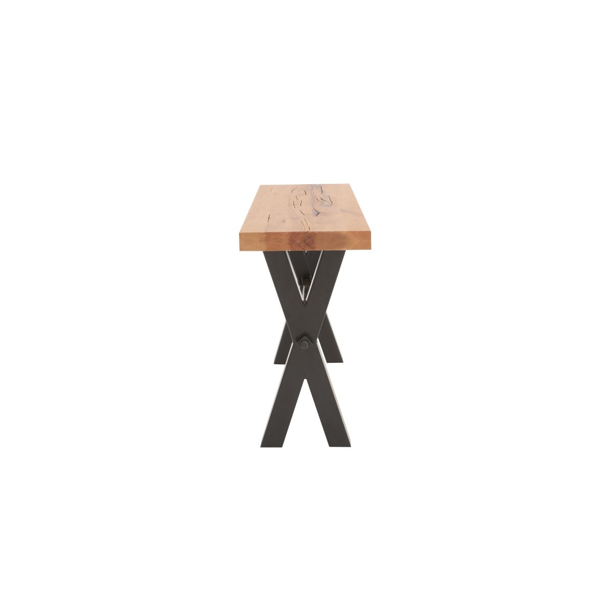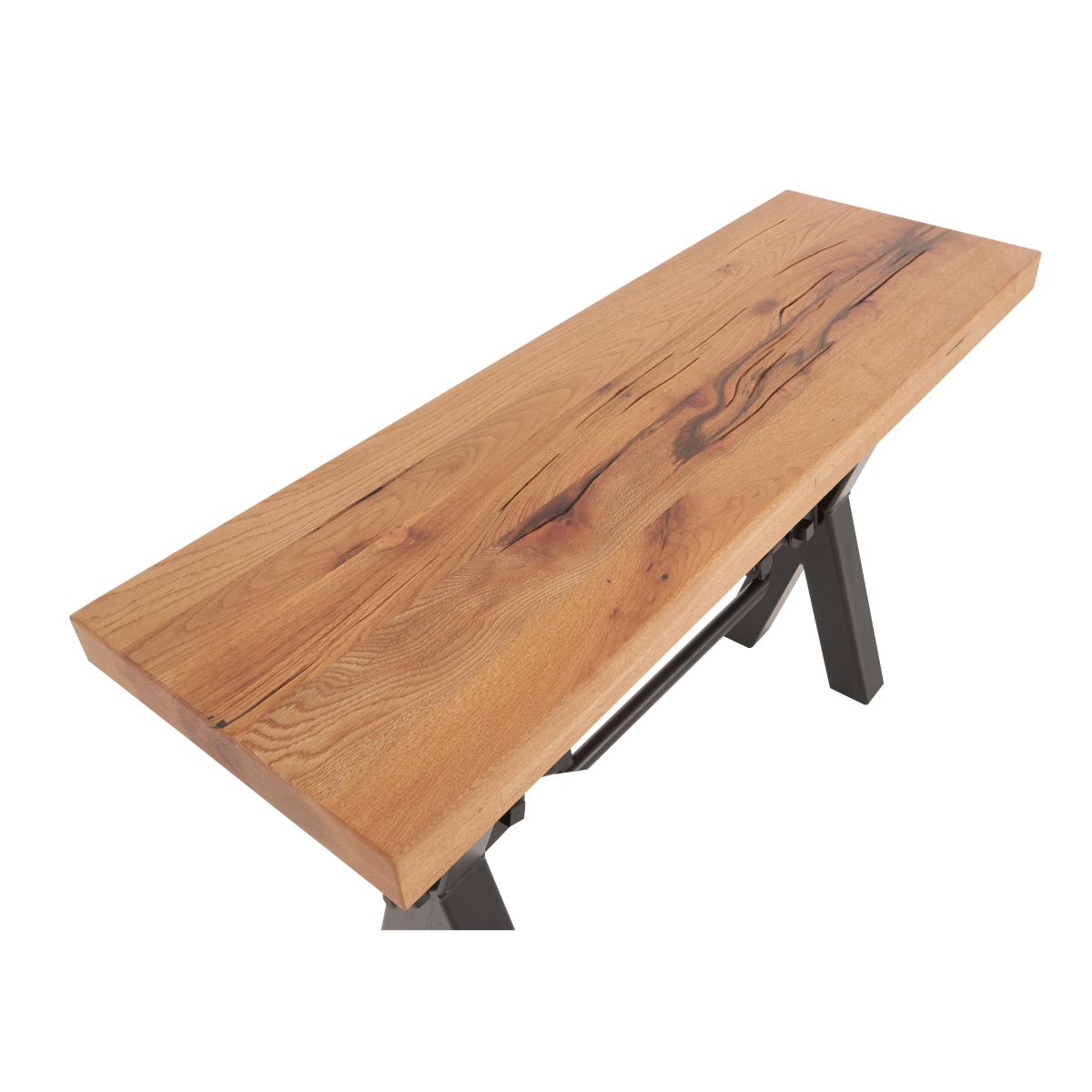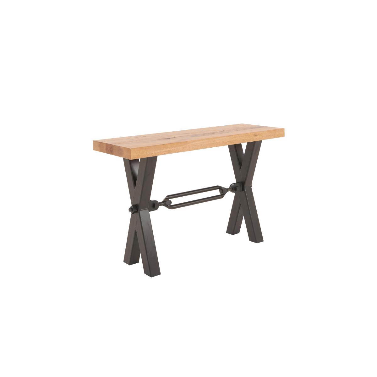 The Terra range combines the warmth of rustic style with the urban edge of industrial design – and it does it beautifully. Expertly handcrafted from solid natural oak, every piece boasts impeccable craftsmanship with knots and markings on full display. Its distinctive black metal legs and natural warmth make this a statement range for design-led interiors and relaxed dining spaces alike. And with a handcrafted padded bench or soft, faux leather cantilevered chairs, there’s plenty of comfy perches to choose from. Simply sit back, tuck in and enjoy your meal in comfort. The Terra range is fully bespoke with a wide range of options for table top edges, thickness, size and colour, alongside several striking leg options. Create your unique design today. The industrial-style Terra console table is the perfect halfway piece to welcome your visitors. Choose from a wide range of wood finishes for the solid oak top. Available in two sizes. Only at Furniture Village. Why you'll love it Handmade rustic oak console table is bold and characterful. Statement industrial style. 100% solid natural oak top has authentic knots and markings. Striking black metal X-shaped base. The table’s long sides have contemporary straight edges. Short sides have folded edges where the wood grain appears to fold over the edge. Choose from a wide selection of oak colour finishes. Wood is topped with a protective matte lacquer. Available in two sizes. The Bodahl Terra collection is only available at Furniture Village. What you need to know Made of solid oak and metal. Small console table is 120 cm wide; large console table is 160 cm wide. Oak top may feature knots, saw marks and variations in tone and texture. Metal legs are finished by hand and may show marks. Use a clean damp cloth to clean the oak top. This Terra console table is also available with a raw edge. A Furniture Village-online exclusive. The Bodahl Terra collection includes dining sets and storage furniture. WARNING! Furniture can tip over unexpectedly and cause injury. This item must be fixed to a wall using the anti-tip kit provided. Be sure to use the correct wall fixings suitable for the walls in your home. Furniture Village is not able to fix anti-tip devices for you. Seek professional advice if you are unsure.