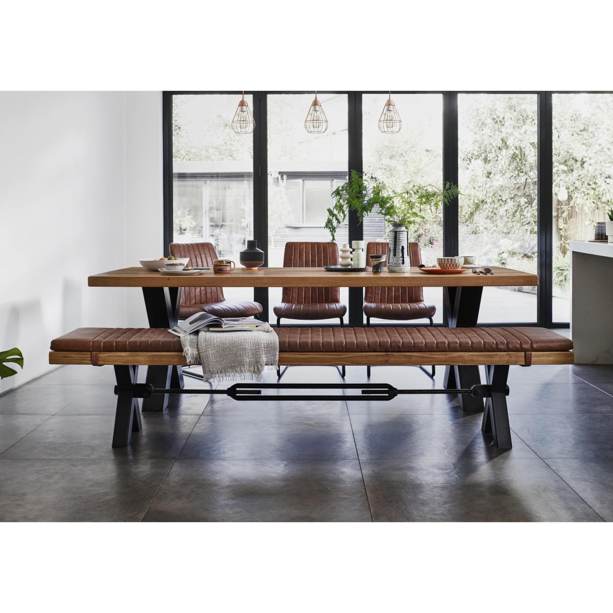 The Terra range combines the warmth of rustic style with the urban edge of industrial design – and it does it beautifully. Expertly handcrafted from solid natural oak, every piece boasts impeccable craftsmanship with knots and markings on full display. Its distinctive black metal legs and natural warmth make this a statement range for design-led interiors and relaxed dining spaces alike. And with a handcrafted padded bench or soft, faux leather cantilevered chairs, there’s plenty of comfy perches to choose from. Simply sit back, tuck in and enjoy your meal in comfort. The Terra range is fully bespoke with a wide range of options for table top edges, thickness, size and colour, alongside several striking leg options. Create your unique design today.• A warm, rustic industrial design with a statement feel • Elegant and distinctive metal work • Beautifully handcrafted from solid natural oak Create a rustic, relaxed dining atmosphere with the Terra Dining Bench. Beautifully handcrafted from solid natural oak, it boasts natural markings, knots and grain - a statement feature in any dining space. With a low profile, it rests on distinctive black metal legs which come in a wide range of industrial-inspired styles to contrast with the oak grain. This handmade bench is roomy enough for at least two people to dine in comfort and comes with an optional bench pad, available in two stylish colours to complement any décor scheme. It’s a great choice for those looking to create a sociable and inviting dining space. The Terra Dining Bench is part of the beautifully handcrafted Terra range. Discover a striking collection of on-trend industrial living and dining furniture with a rustic feel. Please note: The pieces in this collection are handcrafted from solid oak, and characterful knots, saw marks and variations in tone and texture are to be expected. The oak is finished with a matte lacquer. Simply use a clean cloth wrung in water to clean. The metal work has been finished by hand and may display similar marks.