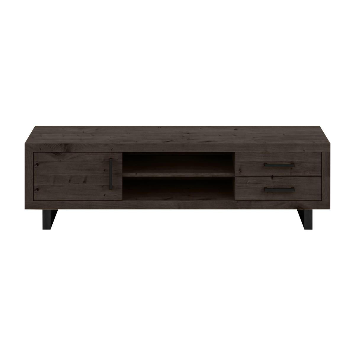 The Terra range combines the warmth of rustic style with the urban edge of industrial design – and it does it beautifully. Expertly handcrafted from solid natural oak, every piece boasts impeccable craftsmanship with knots and markings on full display. Its distinctive black metal legs and natural warmth make this a statement range for design-led interiors and relaxed dining spaces alike. And with a handcrafted padded bench or soft, faux leather cantilevered chairs, there’s plenty of comfy perches to choose from. Simply sit back, tuck in and enjoy your meal in comfort. The Terra range is fully bespoke with a wide range of options for table top edges, thickness, size and colour, alongside several striking leg options. Create your unique design today. Get the media storage you need and the bold industrial style you crave with this stunning large TV unit, part of the handcrafted Bodahl Terra collection. Choose from a wide range of finishes. Why you'll love it Striking and spacious, this large TV unit is handcrafted from solid rustic oak. Statement industrial style. Made from 100% solid natural oak with authentic knots and markings. Striking black metal U-shaped legs. A protective matte lacquer makes this piece even more robust. Choose from a wide selection of oak finishes. Made in Europe. Exclusively available at Furniture Village. This large TV unit is part of the Bodahl Terra collection. What you need to know 1 cupboard, alcove with shelf, 2 drawers. Doors and drawers are soft-closing. Made of solid oak and metal. Oak may feature knots, saw marks and variations in tone and texture. Metal legs are finished by hand and may show marks. Use a clean damp cloth to clean the oak. Create a complete entertainment centre by adding a display cabinet from the range. WARNING!