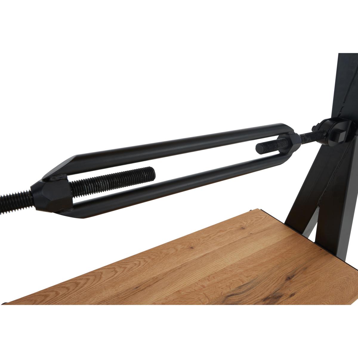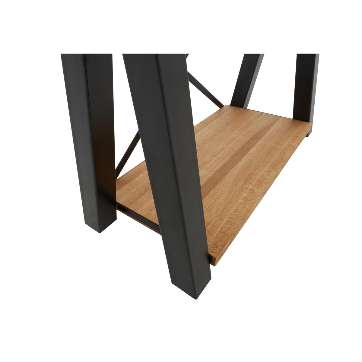 The Terra range combines the warmth of rustic style with the urban edge of industrial design – and it does it beautifully. Expertly handcrafted from solid natural oak, every piece boasts impeccable craftsmanship with knots and markings on full display. Its distinctive black metal legs and natural warmth make this a statement range for design-led interiors and relaxed dining spaces alike. And with a handcrafted padded bench or soft, faux leather cantilevered chairs, there’s plenty of comfy perches to choose from. Simply sit back, tuck in and enjoy your meal in comfort. The Terra range is fully bespoke with a wide range of options for table top edges, thickness, size and colour, alongside several striking leg options. Create your unique design today. This practical shelving unit delivers standout style thanks to its deep oak shelves and eye-catching crossed metal frame. It’s perfect for storing books and makes a cool home for a display of ceramics or glassware. Why you'll love it Handmade rustic oak and metal shelving unit is bold and characterful. Statement industrial style. 100% solid natural oak shelves have authentic knots and markings. Striking black metal X-shaped supports. Choose from a wide selection of oak colour finishes for the shelves. Wood is topped with a protective matte lacquer. The Bodahl Terra collection is only available at Furniture Village. What you need to know Made of solid oak and metal. 4 shelves. Oak shelves may feature knots, saw marks and variations in tone and texture. Metal frame is finished by hand and may show marks. Use a clean damp cloth to clean the oak shelves. A Furniture Village-online exclusive. The Bodahl Terra collection includes dining sets and storage furniture. WARNING!
