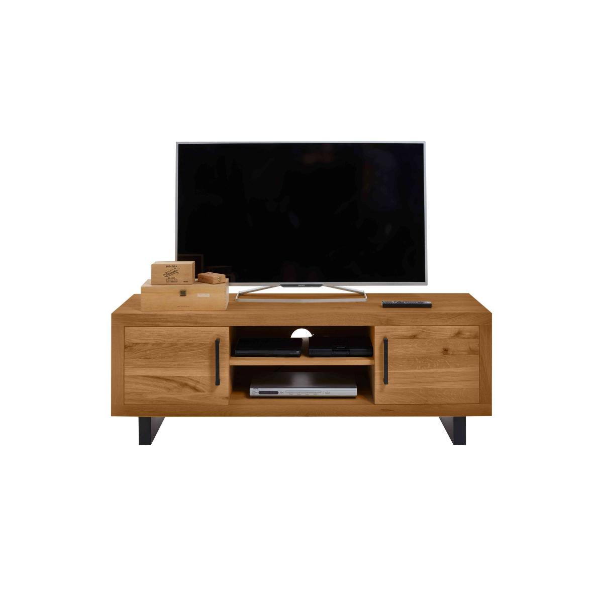 The Terra range combines the warmth of rustic style with the urban edge of industrial design – and it does it beautifully. Expertly handcrafted from solid natural oak, every piece boasts impeccable craftsmanship with knots and markings on full display. Its distinctive black metal legs and natural warmth make this a statement range for design-led interiors and relaxed dining spaces alike. And with a handcrafted padded bench or soft, faux leather cantilevered chairs, there’s plenty of comfy perches to choose from. Simply sit back, tuck in and enjoy your meal in comfort. The Terra range is fully bespoke with a wide range of options for table top edges, thickness, size and colour, alongside several striking leg options. Create your unique design today. The perfect size for any space, this small TV unit has plenty of rustic charm and handcrafted style. Made from solid oak, it’s only available at Furniture Village. Why you'll love it We love the natural rustic look of this small TV unit. Statement industrial style. Made from 100% solid natural oak with authentic knots and markings. Striking black metal U-shaped legs. A protective matte lacquer makes this piece even more robust. Choose from a wide selection of oak finishes. Made in Europe. Exclusively available at Furniture Village. This small TV unit is part of the Bodahl Terra collection. What you need to know 2 cupboards, alcove with shelf. Doors are soft-closing. Made of solid oak and metal. Oak may feature knots, saw marks and variations in tone and texture. Metal legs are finished by hand and may show marks. Use a clean damp cloth to clean the oak. Create a complete entertainment centre by adding a display cabinet from the range. WARNING!