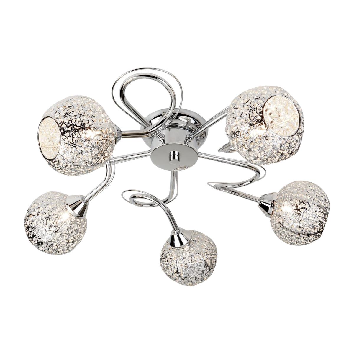 This ceiling flush includes 5 lights and beautiful chrome fretwork pattern shades attached to stylish curved arms. From the shades, a stunning pattern is reflected onto the surrounding walls when the light is lit. When used in a traditional home it creates a timeless appeal and adds a feeling of elegance.