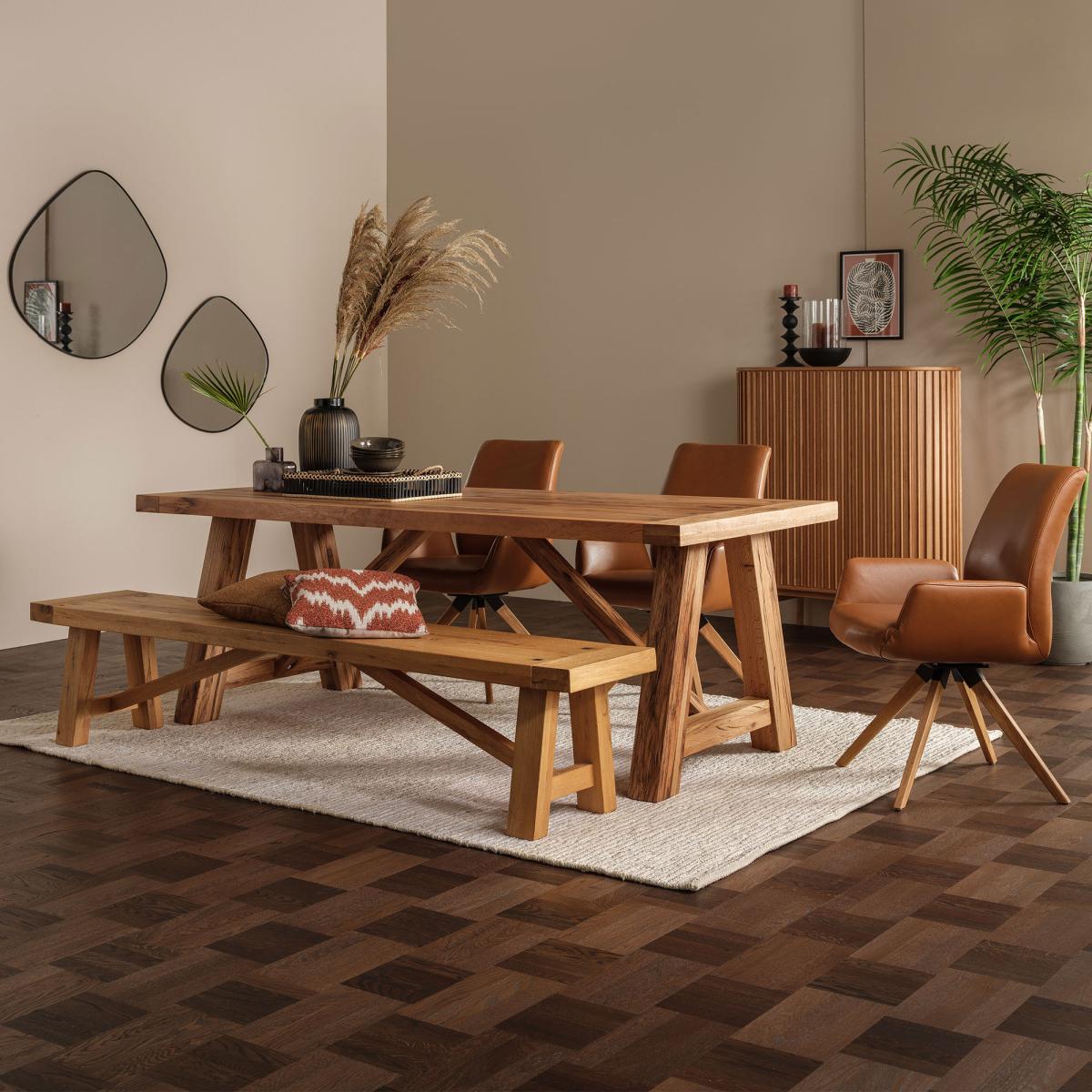 I love this swivel chair because of its blend of comfort and style, making it a versatile choice for many interiors. The rich brown leather adds warmth and sophistication, ideal for both modern and rustic dining spaces or even home offices. It works particularly well in mid-century inspired schemes or contemporary interiors that benefit from a touch of classic elegance. For styling tips, consider pairing it with a statement dining table or mixing it with fabric chairs for visual contrast. Practical addition - its swivel function helps with ease of movement around the table, making it not just stylish but functional as well. A great all-rounder for adding a refined yet practical touch to your dining or work area.