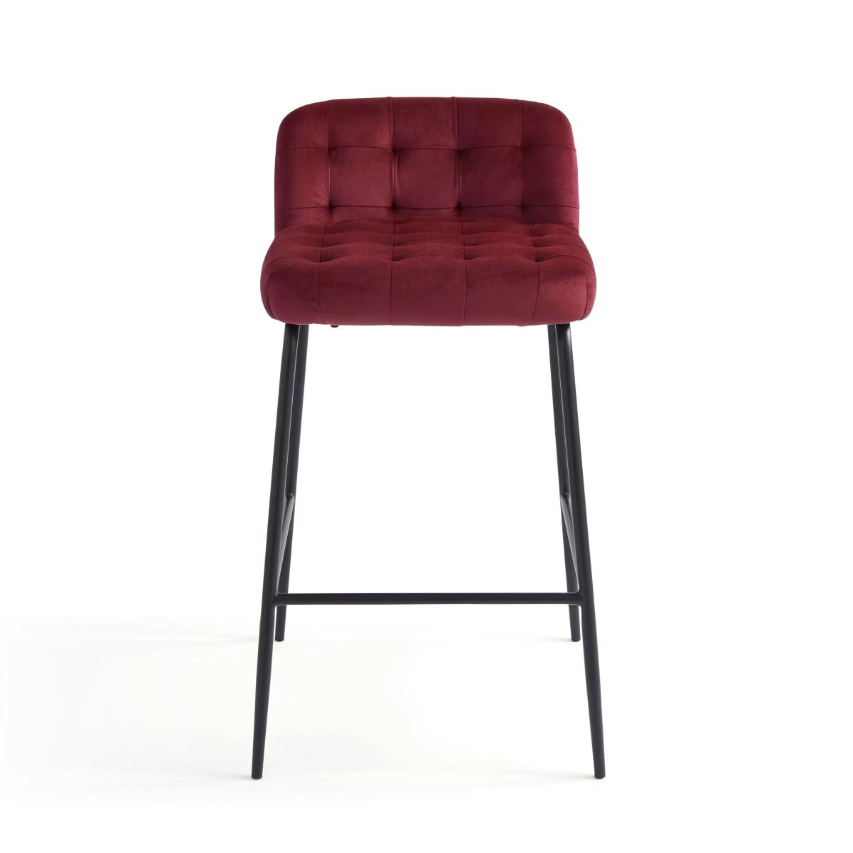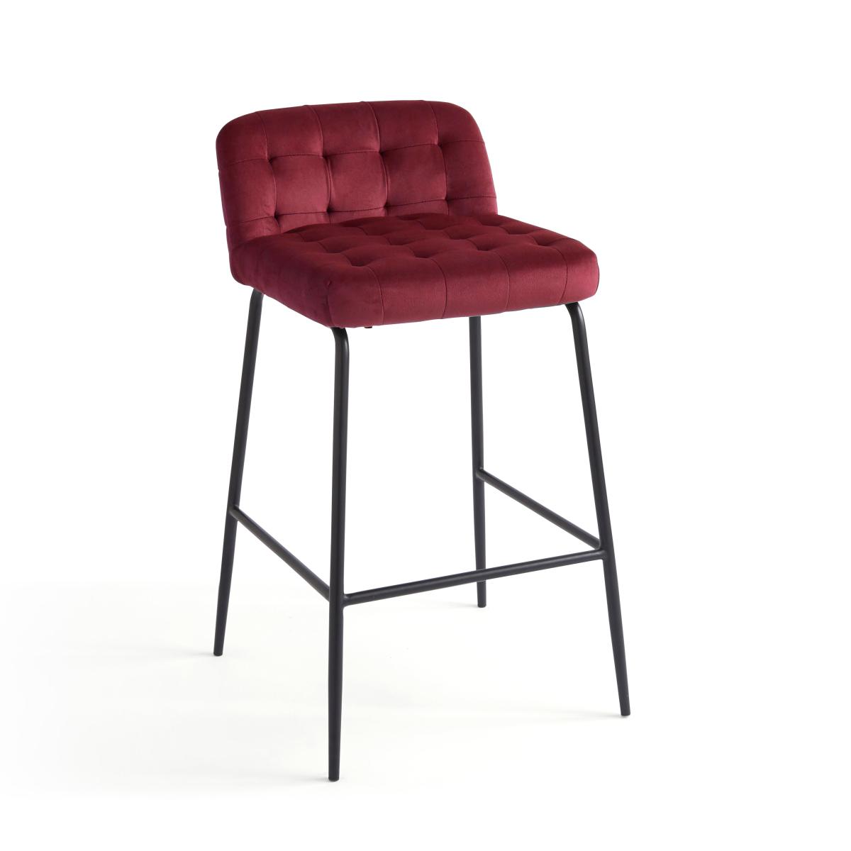 I’m a fan of these mulberry velvet counter stools for the way their deep colour and subtle diamond-tufting add both texture and warmth without overwhelming a scheme. They sit beautifully in contemporary or mid-century-inspired kitchens, and the slim black metal legs keep them feeling light under a white or pale wood breakfast bar. For practical styling, pair them with brass or matte black taps and simple, clean-lined cabinetry to pick up the leg detail. A neutral runner or slim vase of greenery on the counter will balance the richness of the velvet, while a low-profile footrest cushion can make longer gatherings more comfortable.