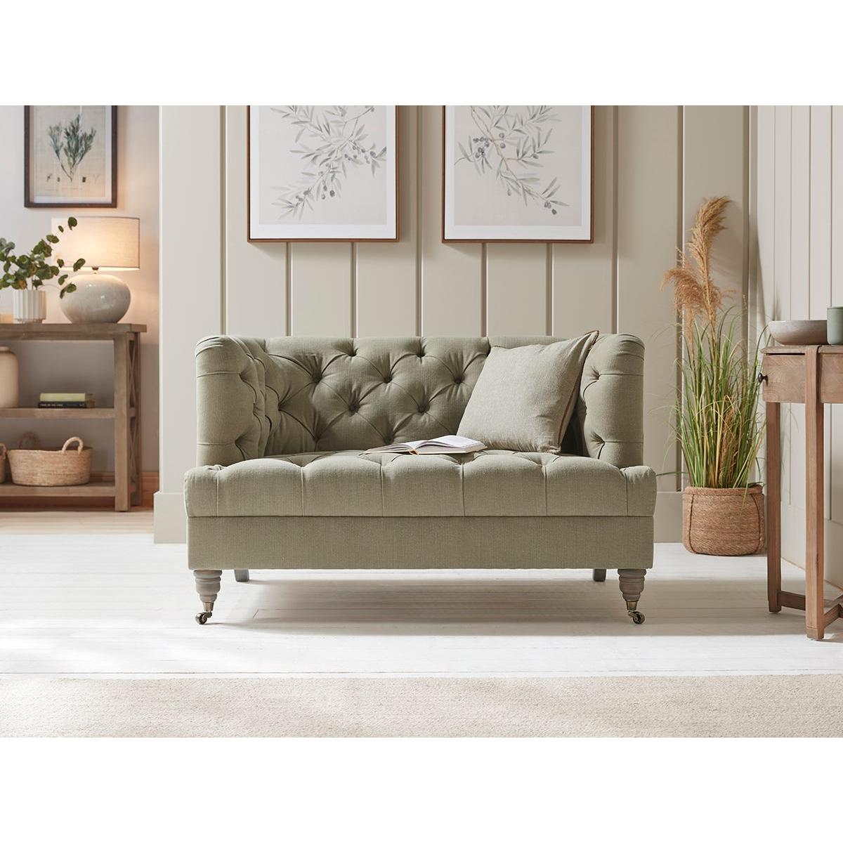 Reflecting the same sculptural elegance as the sofa, the Bodo Loveseat also provides a sophisticated look for more formal settings. The dramatic buttoned back curves around the seat to create a cosy appeal while hand turned legs on castors complete the luxurious look. The Bodo collection also includes a two and three seater sofa and two sizes of ottoman. Our Bodo collection can be upholstered in a choice of 33 distinctive shades and five fabrics to suit your style. Read our Upholstery FAQs View our full Upholstery Terms and Conditions