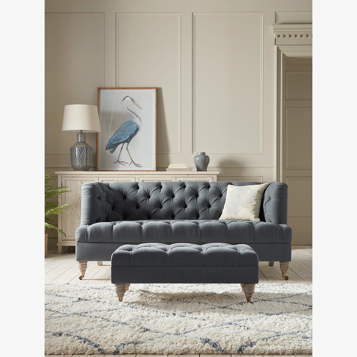 There’s a beautiful sculptural elegance to the Bodo sofa which provides a sophisticated look for more formal settings. The dramatic buttoned back curves around the seat to create a cosy appeal while hand turned legs on castors complete the luxurious look. The sofa is available in both a two and three seater size and the Bodo collection also includes a loveseat and two sizes of ottoman. Our Bodo collection can be upholstered in a choice of 33 distinctive shades and five fabrics to suit your style. Read our Upholstery FAQs View our full Upholstery Terms and Conditions