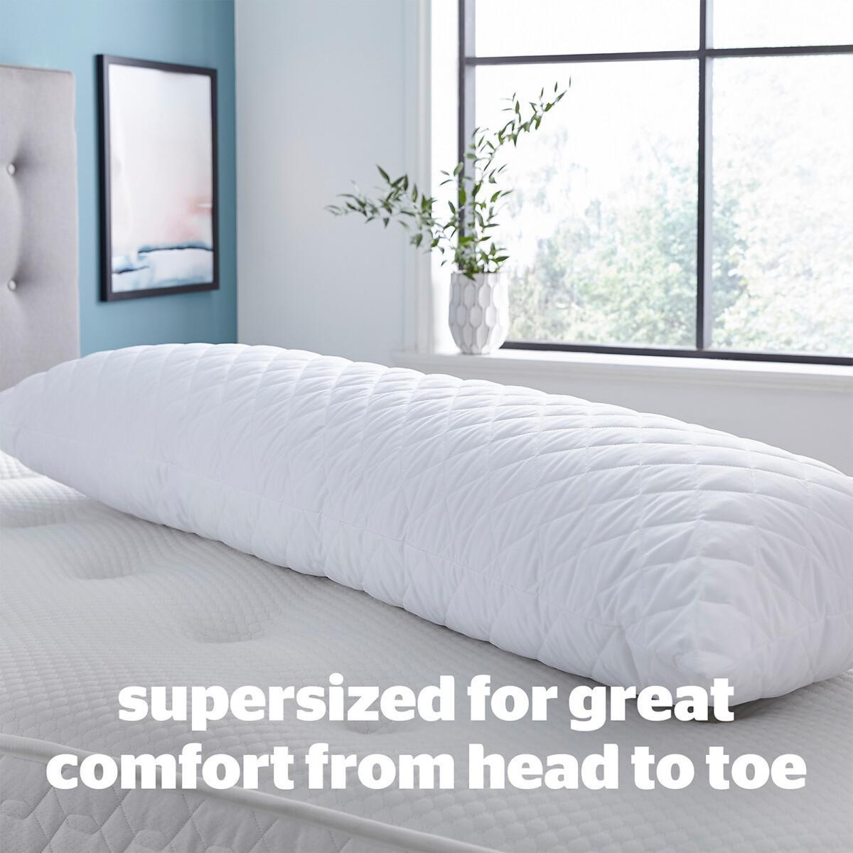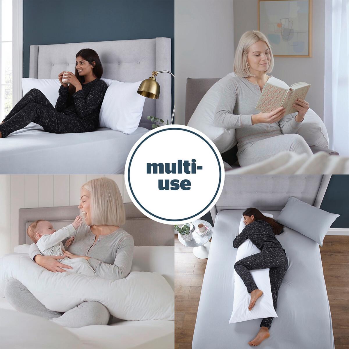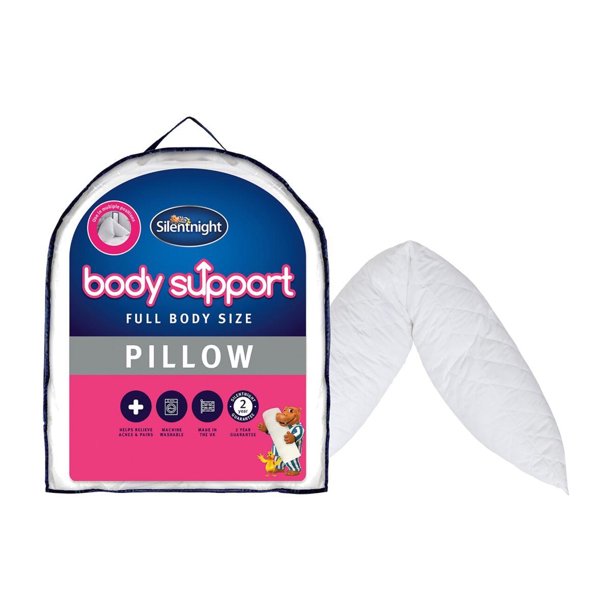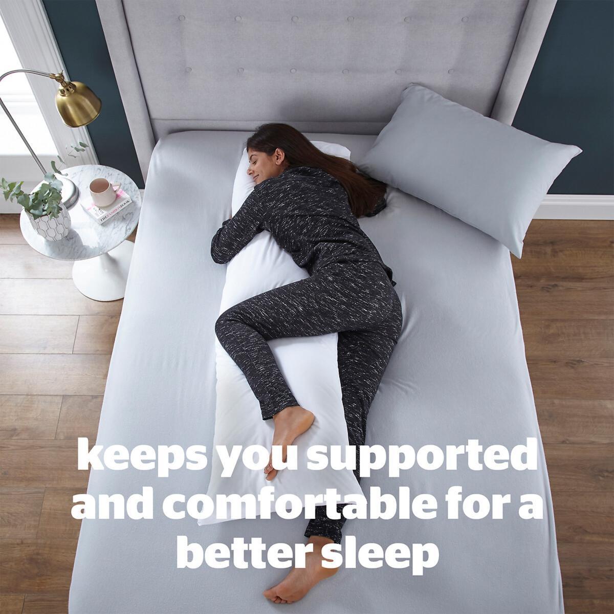 For great comfort and complete body support when sleeping, or relaxing. The Silentnight Body Support Pillow is completely versatile and can be used in multiple way, offering support for your back, hips, neck, and stomach to aid pain relief. The pillow can also provide comfort for expectant mothers and great support when nursing babies. Or you can prop the pillow up while you relax in bed with a good book. Whatever your sleep position, you will be sure to find the support you need for a supreme night’s sleep. Crafted from soft quilted microfibre and filled with squishy hollowfibre, the Body Support Pillow also includes a soft microfibre pillowcase. HUGGABLE FULL BODY SUPPORT: Gently relieves pressure and aches with support where you need it, so you can easily find a comfortable sleep position. Hug to relieve pressure on your shoulders, or place between the knees to aid spinal alignment and relieve lower back pain. Perfect to gently support pregnancy bumps. SUPERSIZED: The Silentnight Body Support pillow fits the natural contours of the body to provide full support from tip to toe. MULTI-USE: Ideal for sleeping or relaxing, the Silentnight Body Support pillow can be used in multiple ways, from huggable sleep support to extra comfort when sitting up in bed, or as extra support when pregnant or nursing. PROMOTES HEALTHY SLEEP: Keeps you supported and comfortable to help you achieve the sleep you need. PILLOWCASE INCLUDED: This pillow comes with a fitted soft-touch pillowcase for extra protection. MACHINE WASHABLE: Both the pillow and pillowcase are machine washable for your convenience. Both are hypoallergenic, kind to skin and do not contain any materials likely to cause allergies. Product Dimensions- L147 x W48 x H20cm. This product will be dispatched by one of our trusted suppliers. You’ll be contacted by their selected courier about your delivery. Goods must be unused and returned in their original packaging. If sealed for health/hygiene reasons they must also be returned unopened with seals, stickers and tags intact.