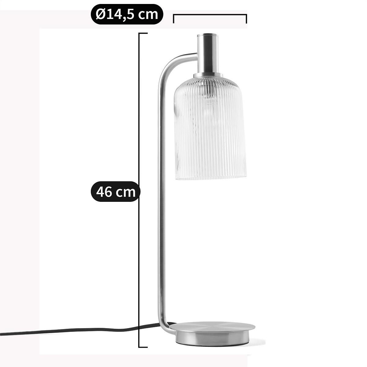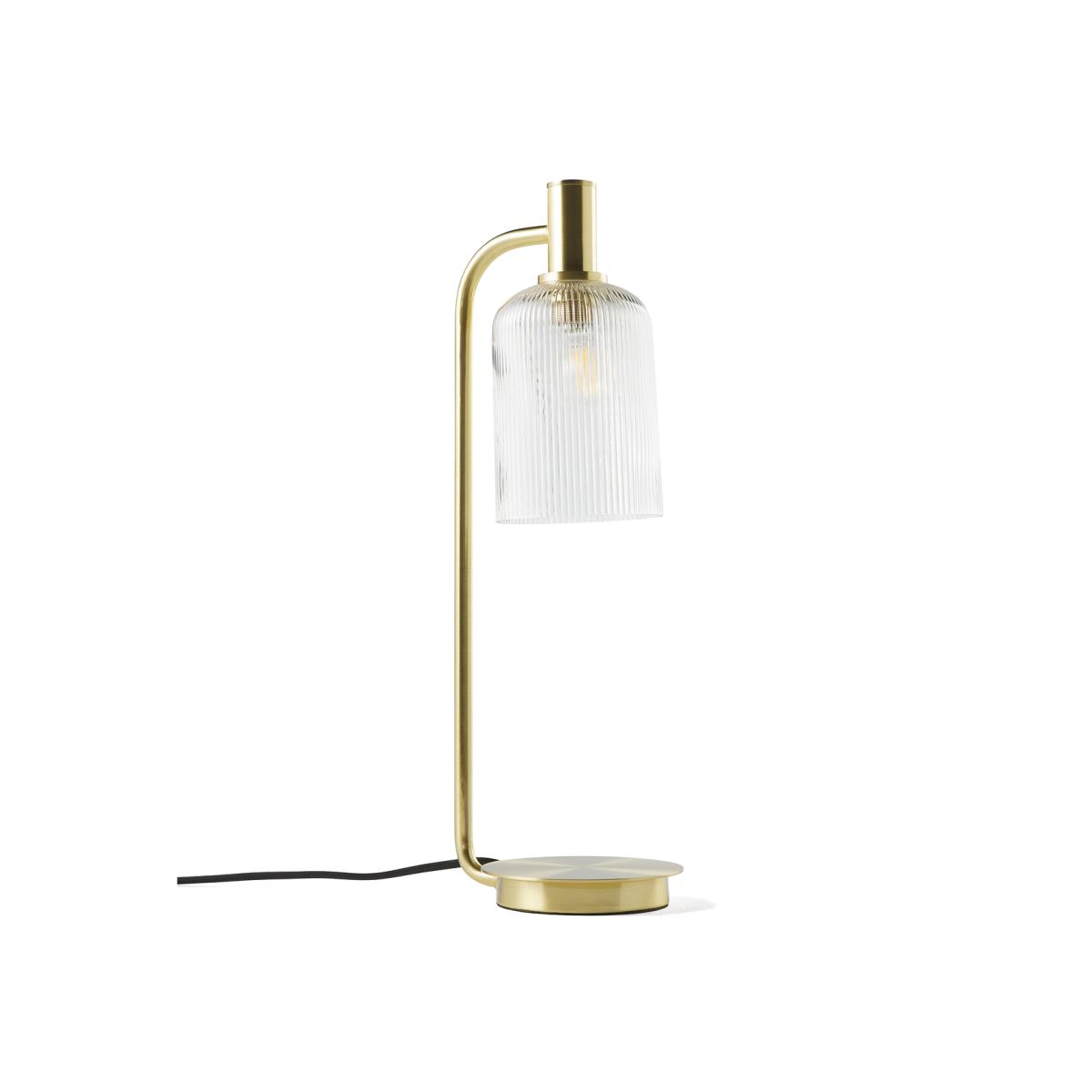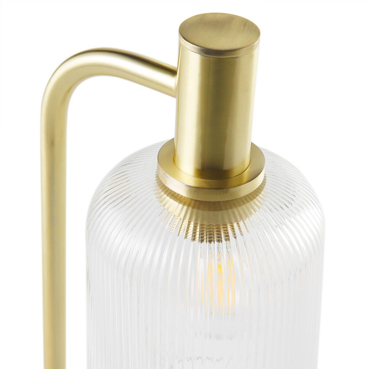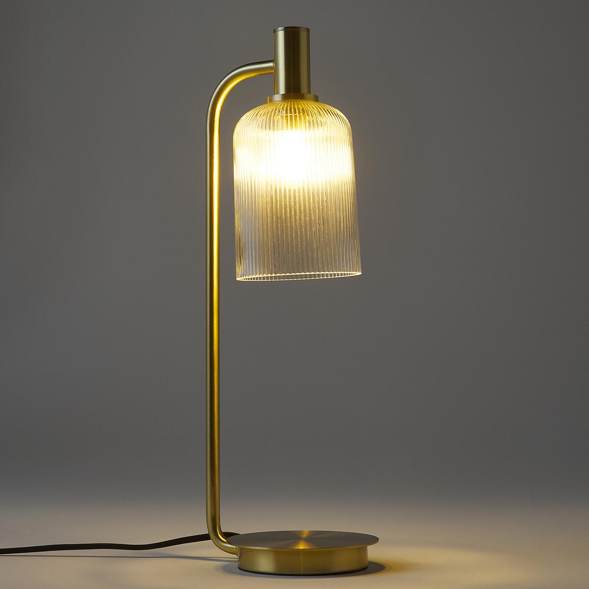 You'll be charmed by the striated glass and brass touches of this light! A table lamp with multiple posing options, it will bring a touch of chic style to a desk, a chest of drawers or on the bedside table. Product Details • Brass-finish iron structure and textured glass lampshade • Support for E14 socket for compact fluorescent bulb of 8W max, (not supplied)Dimensions • Diameter: 14.5cm • Height: 46cm. Dimensions and weight of parcel1 parcel • 19.5 x 17 x 51.5cm • 2kg