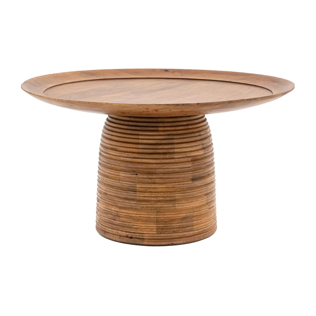 This bohemian-inspired coffee table is more than just a functional piece. The spacious tabletop showcases the natural beauty of mango wood and the distinctive ridged base adds texture and character.