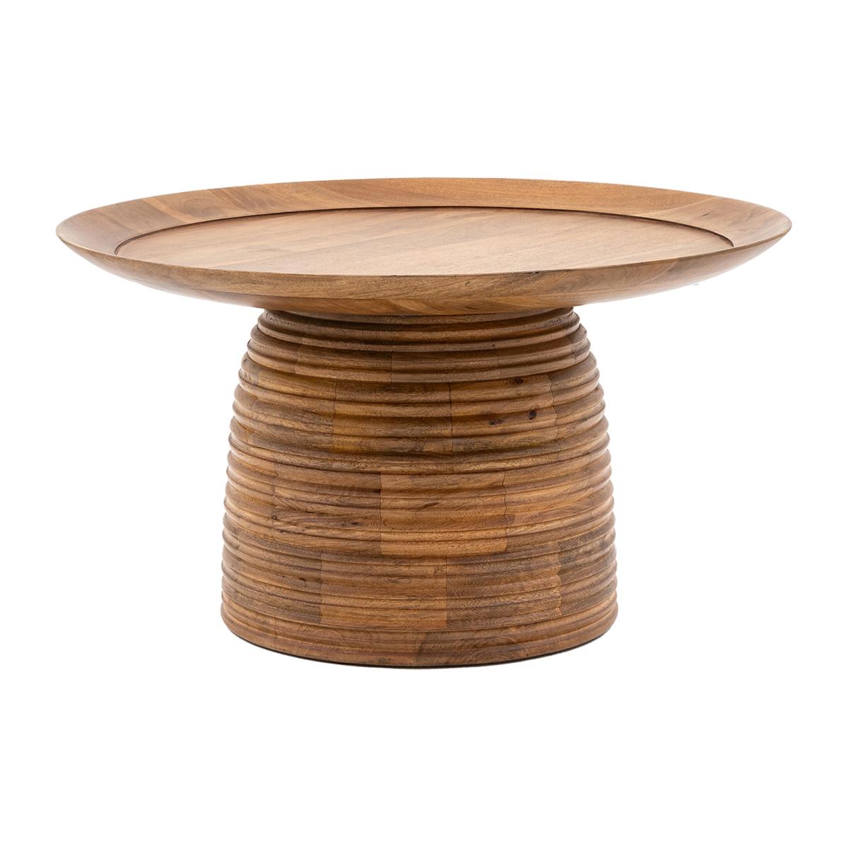 This bohemian-inspired side table is more than just a functional piece. The spacious tabletop showcases the natural beauty of mango wood and the distinctive ridged base adds texture and character.
