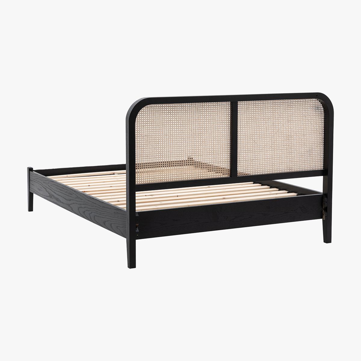 An instant classic you can't afford to miss out on. In solid black stained oak finished with elegant tapered legs, it's the woven natural rattan headboard which really makes this bed stand out, adding a bit of drama and charming boho style to your bedroom.