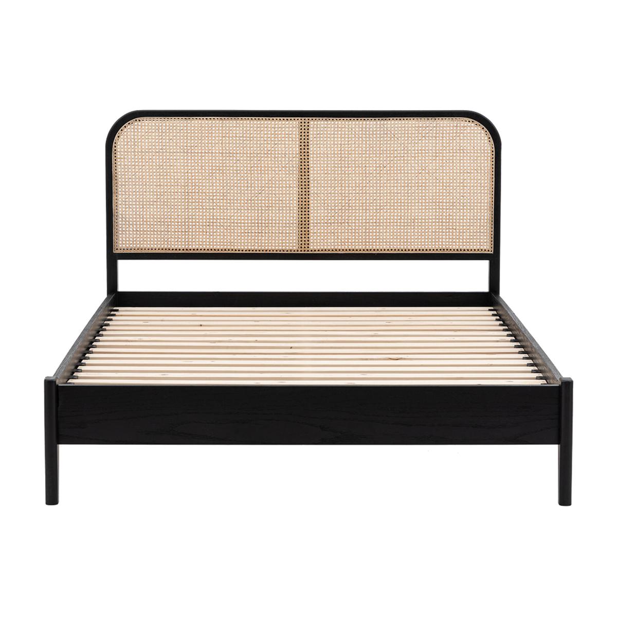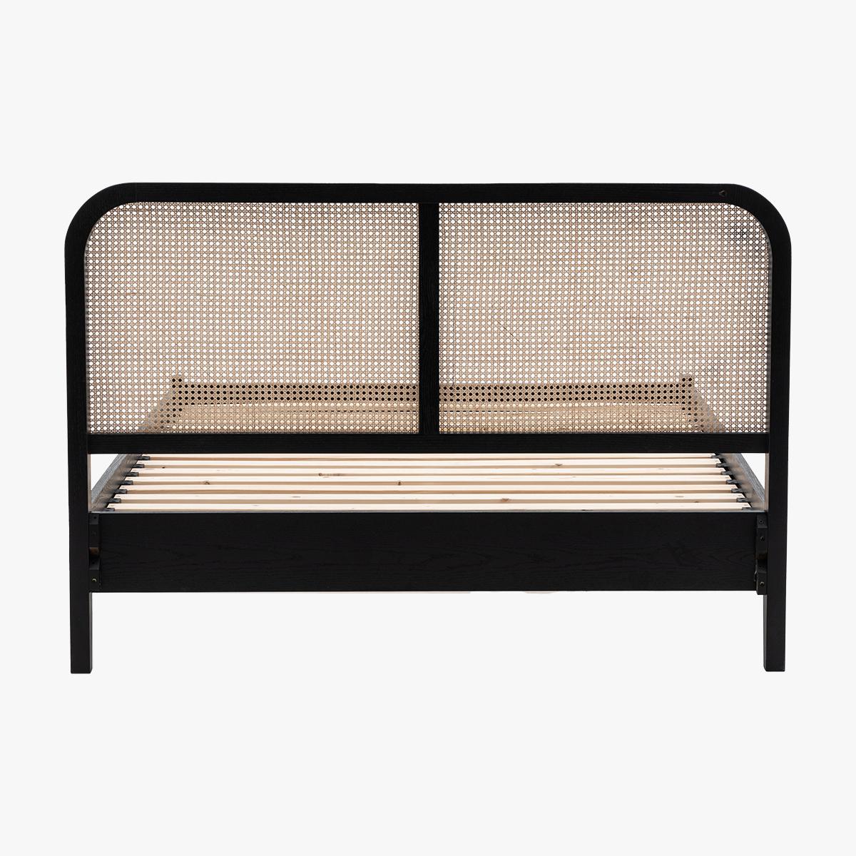 An instant classic you can't afford to miss out on. In solid black stained oak finished with elegant tapered legs, it's the woven natural rattan headboard which really makes this bed stand out, adding a bit of drama and charming boho style to your bedroom.