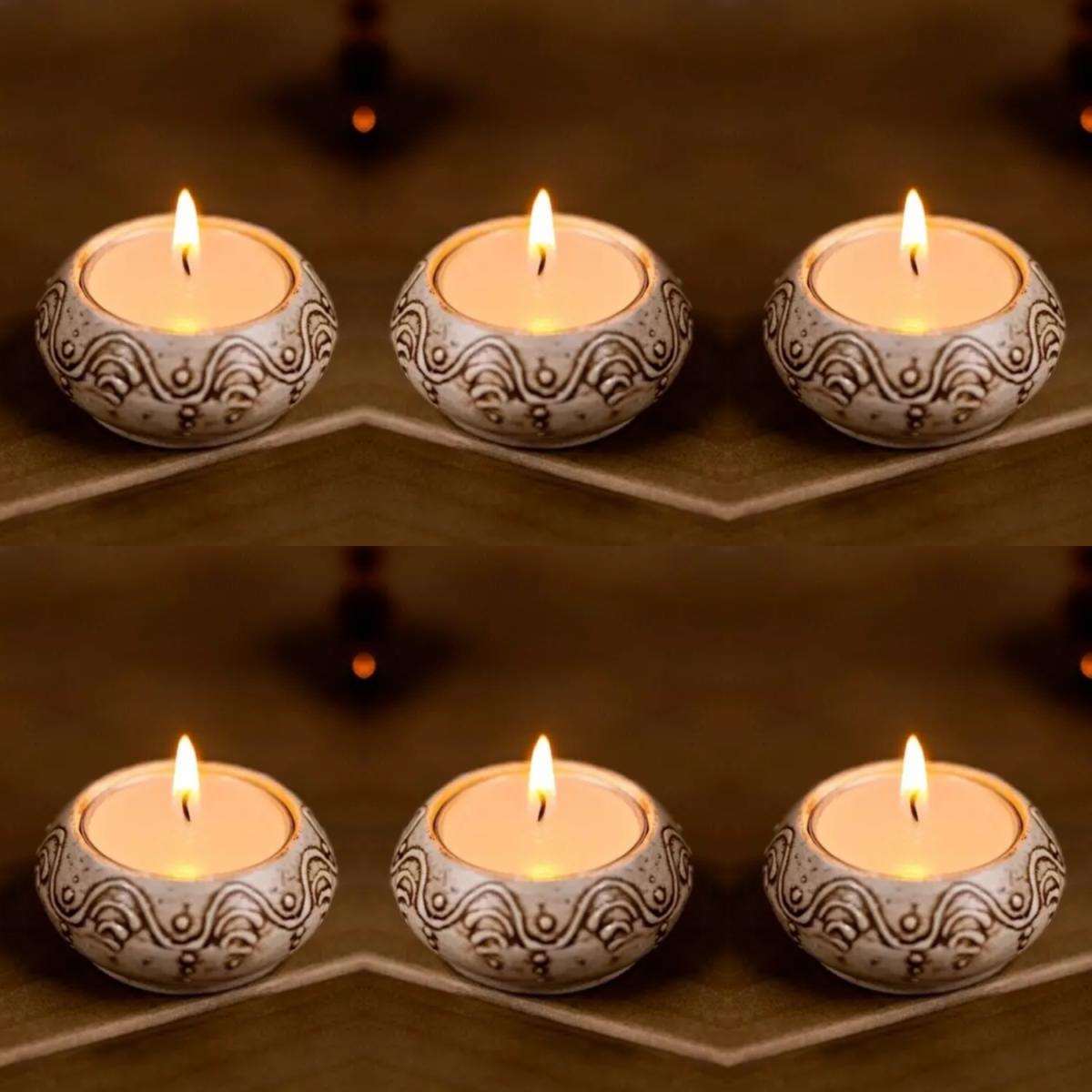 These ceramic holders are elegantly glazed. The tealights can be removed and replaced when spent. The gentle glow from a tealight brings warmth to every occasion. Display these striking candle holders on windowsills, mantlepieces, shelving, or as a unique and eye-catching table centrepiece.