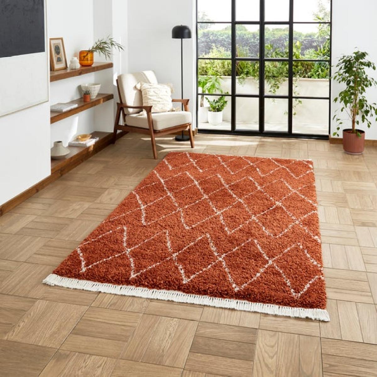 I love this boho rug for its warm, earthy tone and contemporary pattern, which make it versatile enough for various interiors. It works particularly well in living rooms or bedrooms that have a relaxed, eclectic vibe, adding both texture and colour without overpowering the space. For styling tips, consider layering it over neutral or wooden flooring to create visual interest, and pair it with natural materials như woven baskets or wooden furniture for a cohesive look. Its size makes it ideal for defining a sitting or reading nook, and it’s practical for adding some comfort underfoot in high-traffic areas.