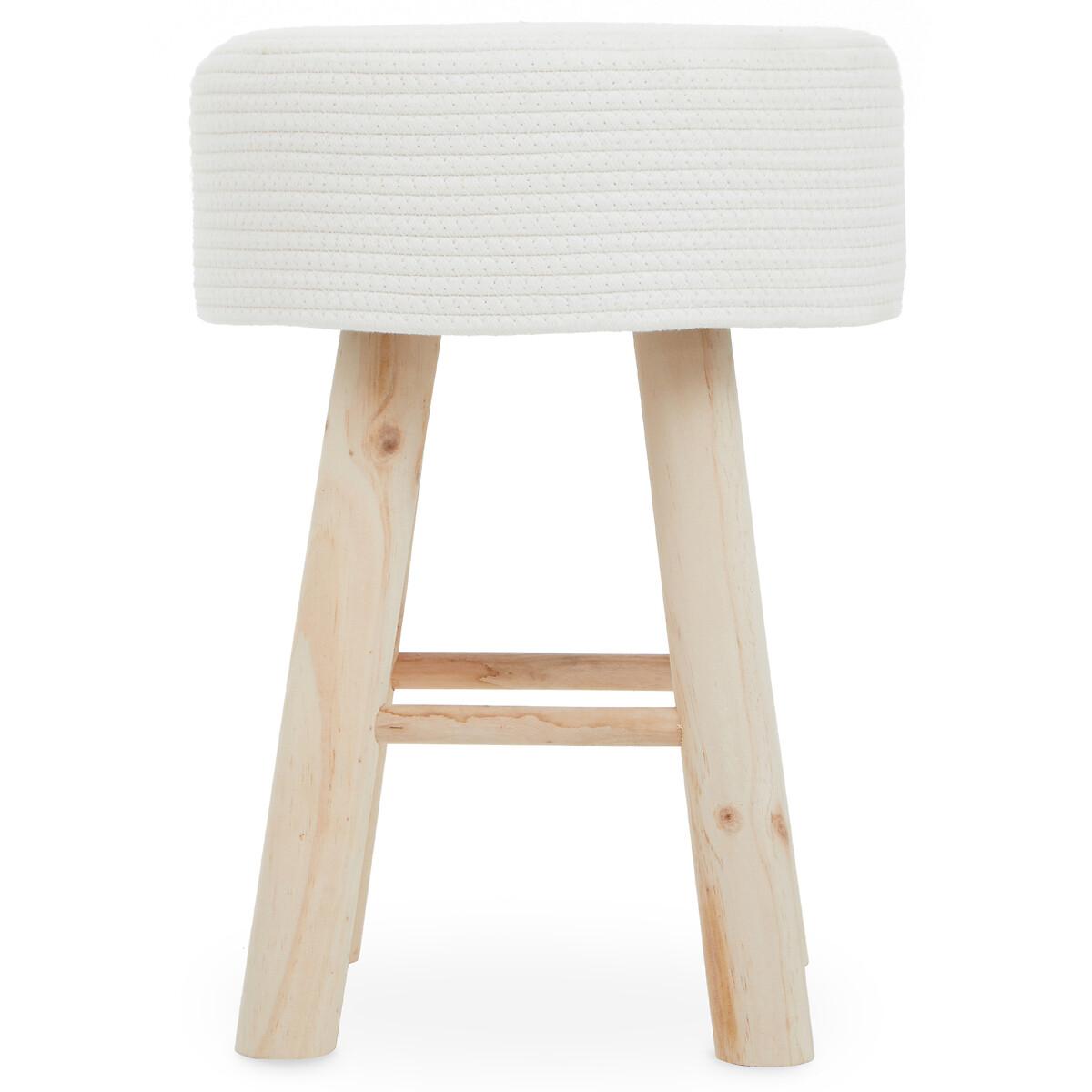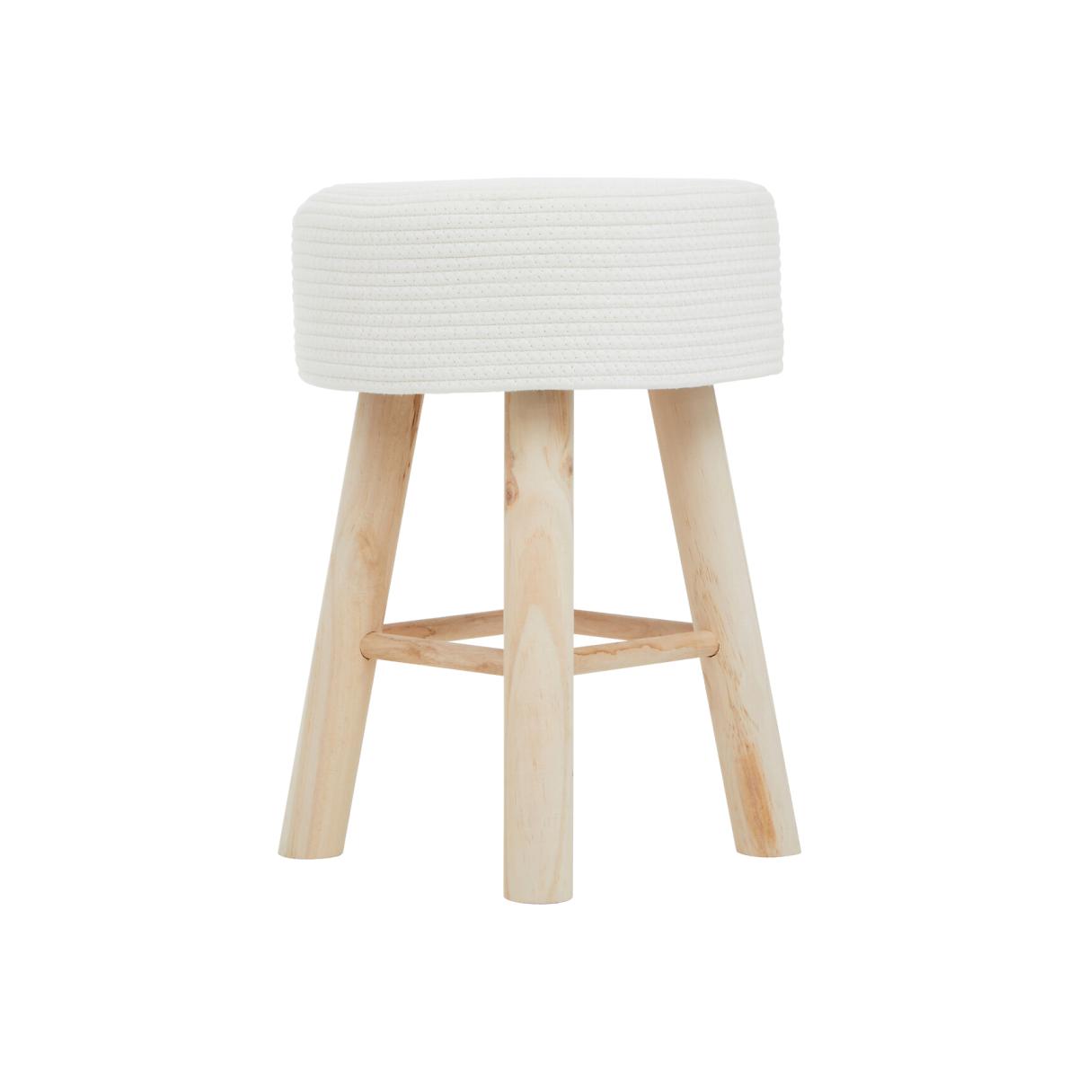 Hand-made white cotton stool is naturally classic and has environment friendly fibres. Four rough-hewn wooden legs support the round seat and contrast the chic white hues. Featuring a rounded top in a soft white accent, style this stool with coastal or Mediterranean decors. Product details Delivered fully assembled Product Composition - Wood, Textile. Product Dimensions - 35 cm x35 cm x50 cm , Weight - 3.85 KGPackage Dimensions - 51 cm x 51 cm x 36 cm, Weight 3 kg. This product will be dispatched by one of our trusted suppliers. You’ll be contacted by their selected courier about your delivery. PREMI01