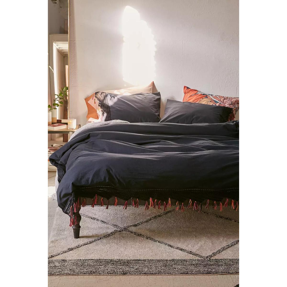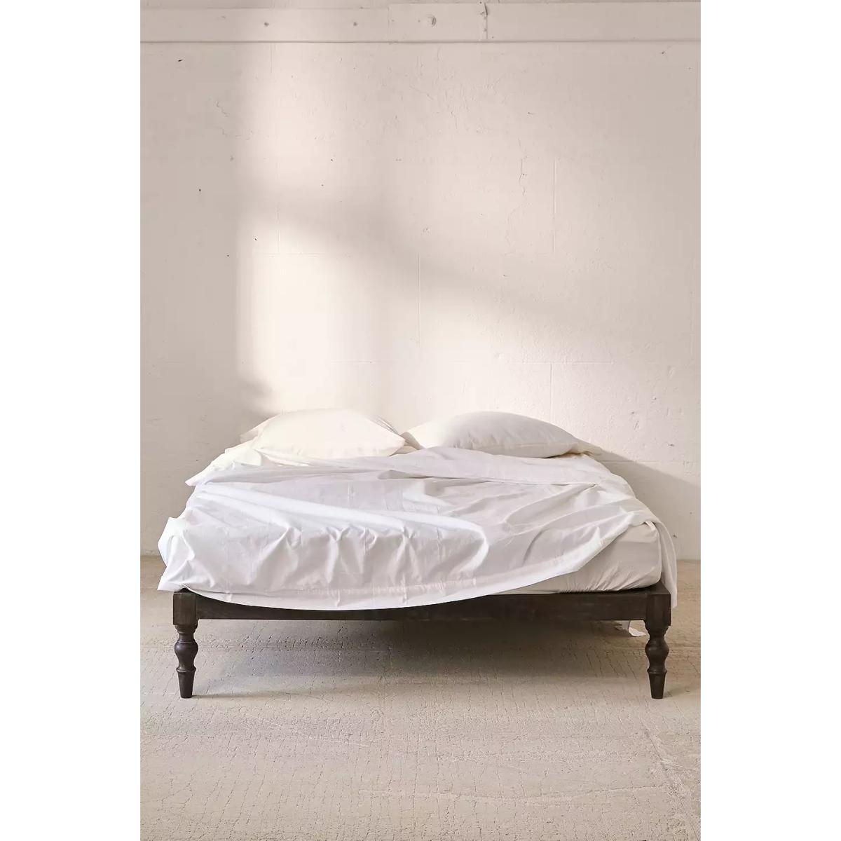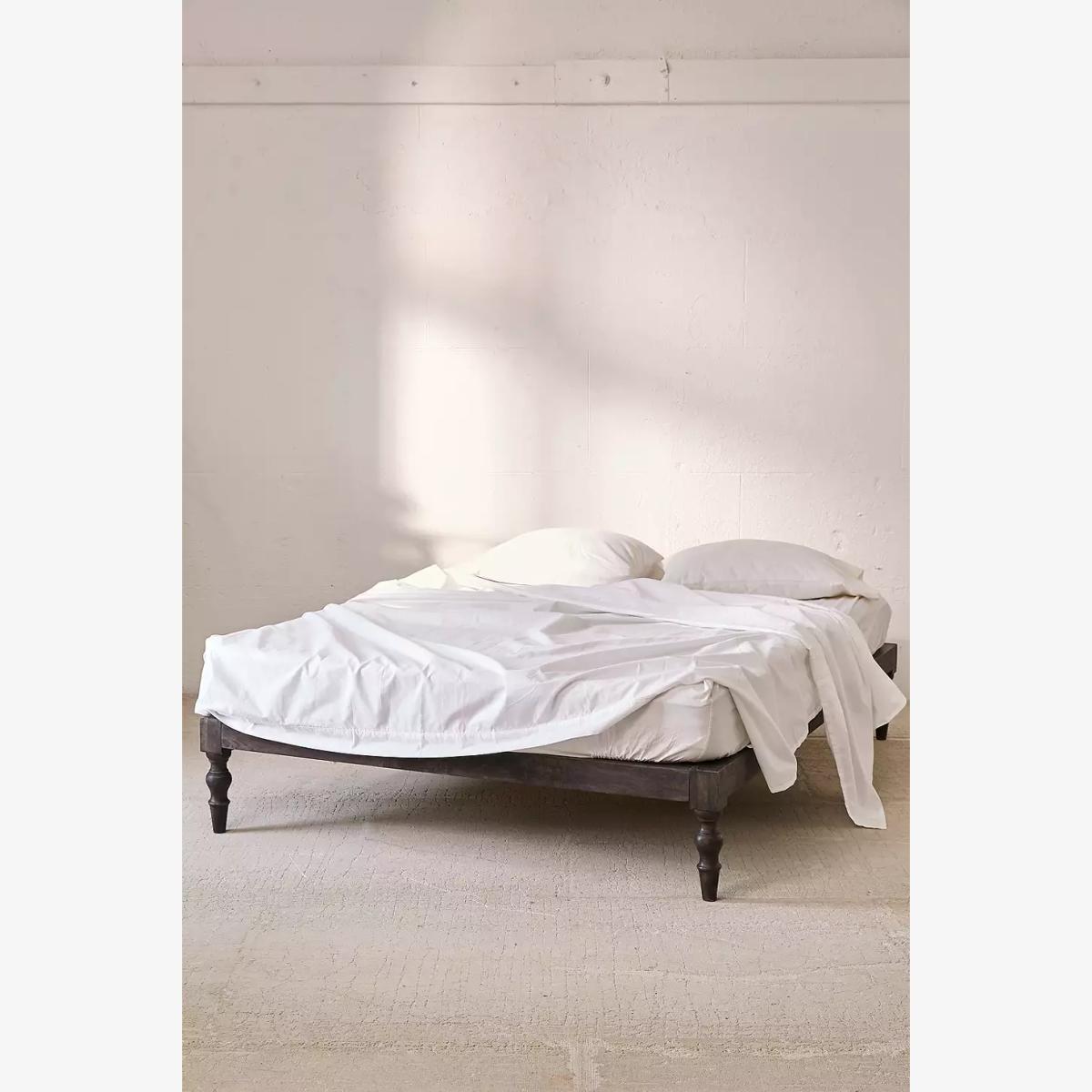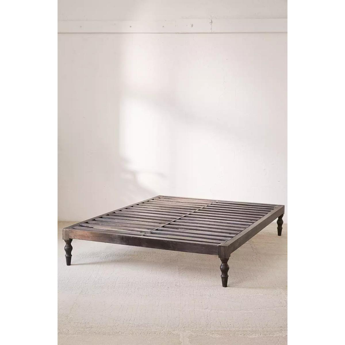 Carved from sustainable mango wood, our boho king size bed adds an understated rustic touch. Complete with a sturdy slatted design so no box spring is needed! Mattress and bedding sold separately. *Online return only. This item cannot be returned instore. Please note furniture items currently cannot be shipped to Northern Ireland or The Republic of Ireland. Delivery of large furniture items may take 1-2 weeks and are therefore not eligible for Next Day Delivery.* **Content + Care** \- Assembly required - instruction and hardware included \- Mango wood, Iron \- Wipe clean **Size** \- King \- Bed frame size: 203.2cm x 152.4cm \- Mattress space: W: 152cm x D: 203cm \- Leg height: 34.3cm \- Weight: 46kg \- Shipping package dimensions: W: 218.5cm x D: 48cm x H: 25.5cm \- Shipping package weight: 56kg