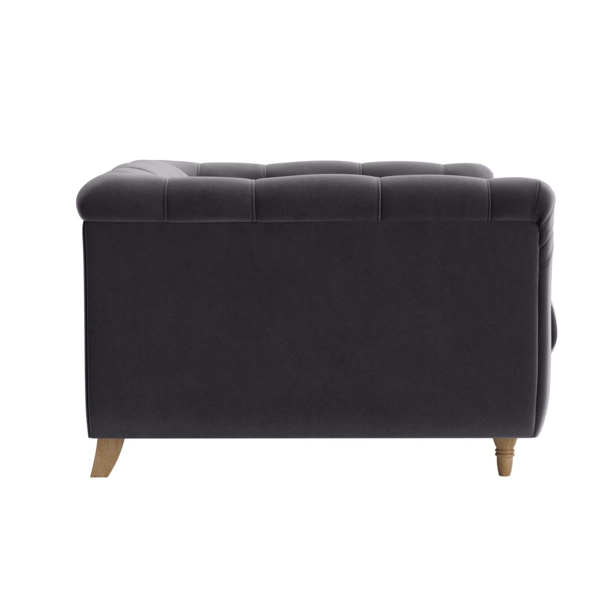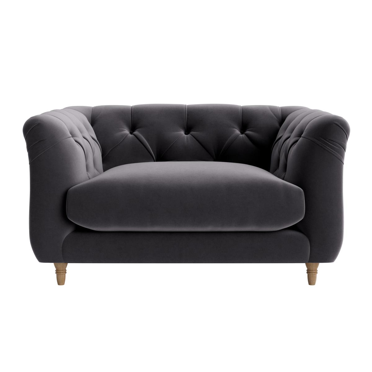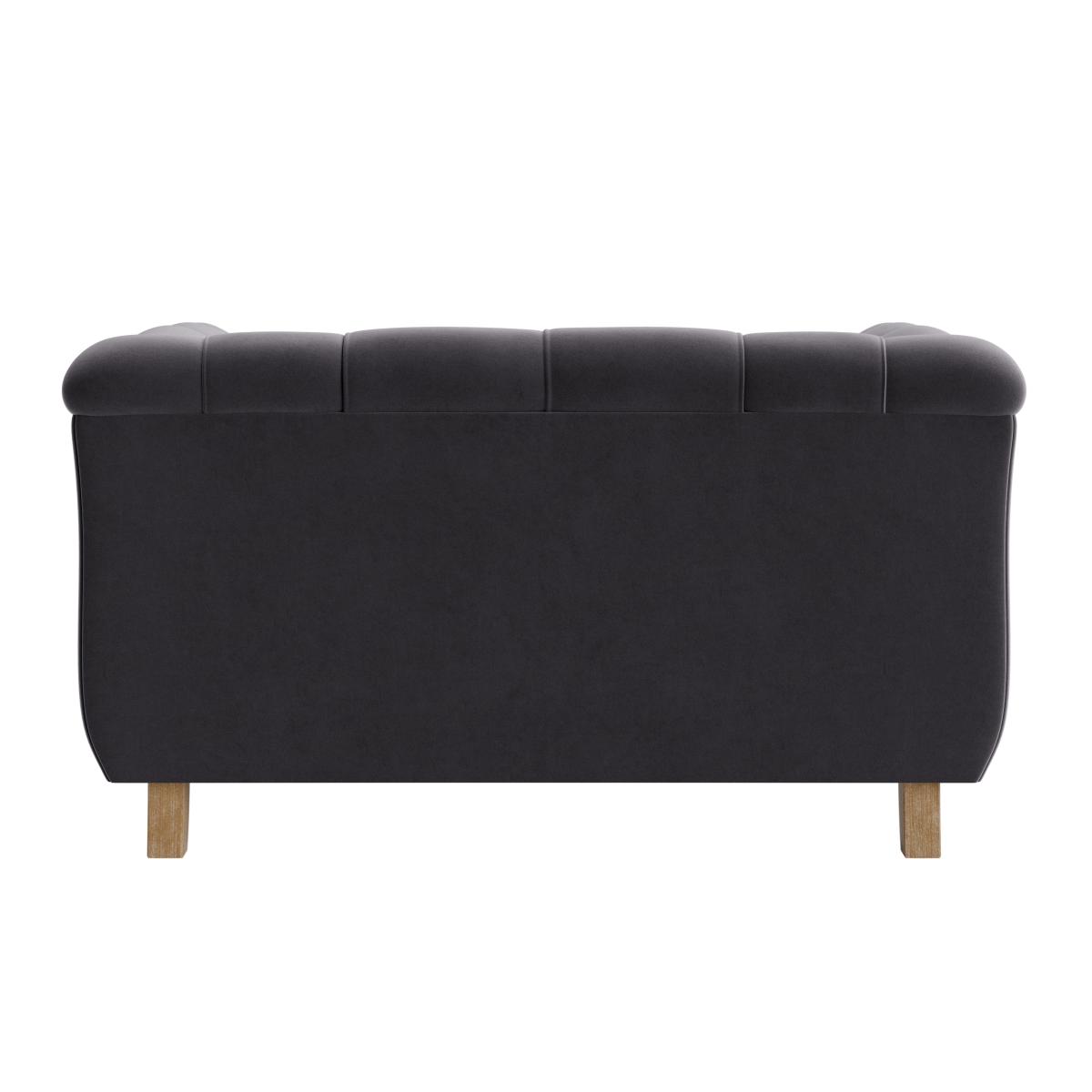I really like this love seat for its classic yet relaxed design, making it a versatile addition to various interiors. It works particularly well in cosy living rooms, eclectic spaces, or even a transitional style setting where you want a piece that balances comfort with visual impact. The rolled arms and tufted detailing add a touch of vintage charm, while the dark colour makes it easy to style with patterned or textured cushions for added personality. For practical styling, consider pairing it with neutral or patterned rugs and layering with throws for extra comfort. It’s a great furniture choice for creating an inviting spot to relax, without overpowering the room.