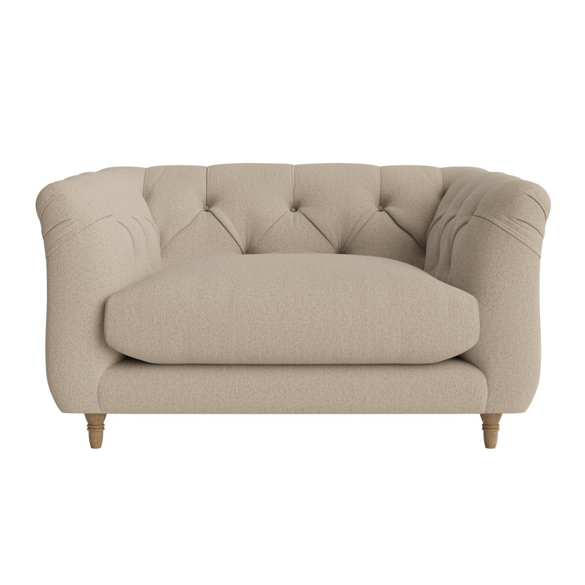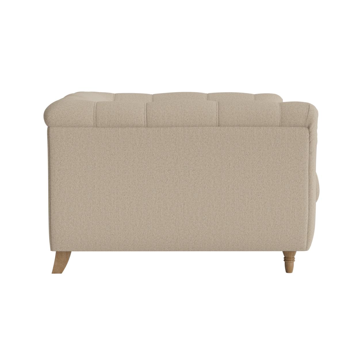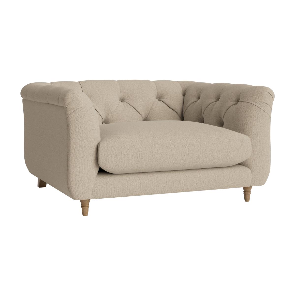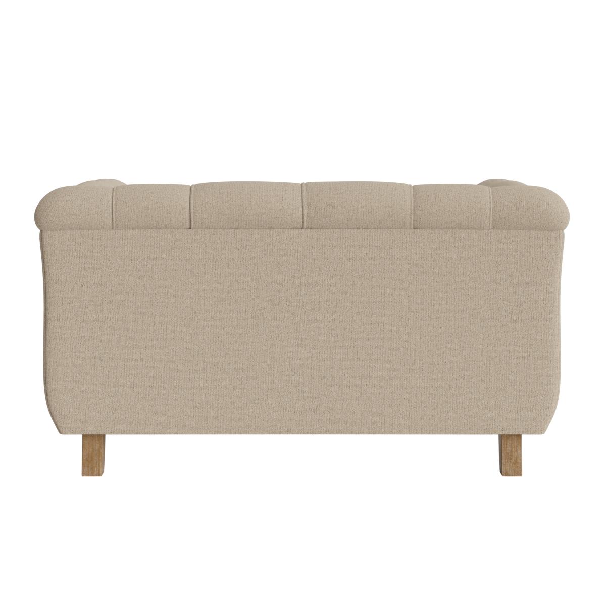 I love this loveseats for its cosy, relaxed vibe and versatile style. It works particularly well in eclectic and boho interiors, where its slightly informal, inviting look can be styled with an array of cushions and throws for extra flair. The neutral colour makes it easy to mix with patterned textiles and colourful accessories, while its rounded shape and tufted detailing lend a timeless charm. For practical styling, keep the surrounding decor simple and warm, and consider pairing it with a textured rug or low coffee table to enhance the laid-back feel. This piece is perfect for small lounge areas or to create a cosy corner in larger open-plan spaces.