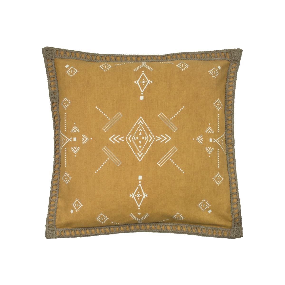 Design. The Boho Mustard Cushion has a hand drawn aztec inspired design which is perfect for bohemian styling at home. Featuring a jute braided trim, this is the perfect finishing touch and will add a visually textural statement to your interior.