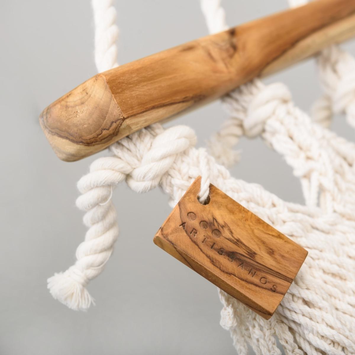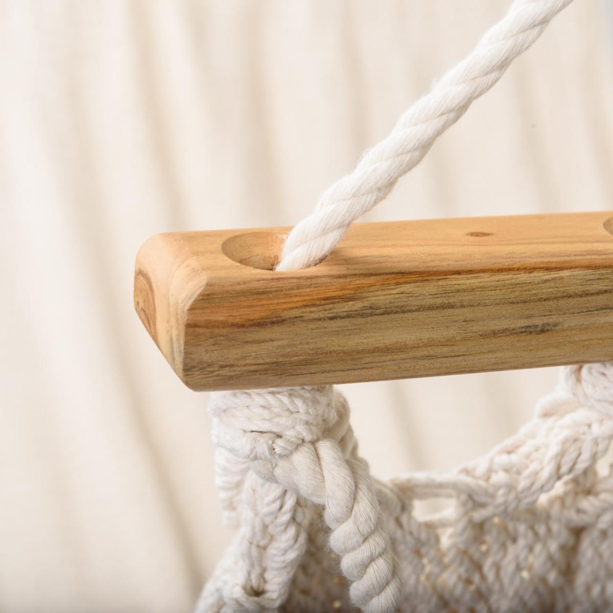 Boho Natural Cotton Hammock With Geometric Fringe - Teak Wooden Bar Artissanos